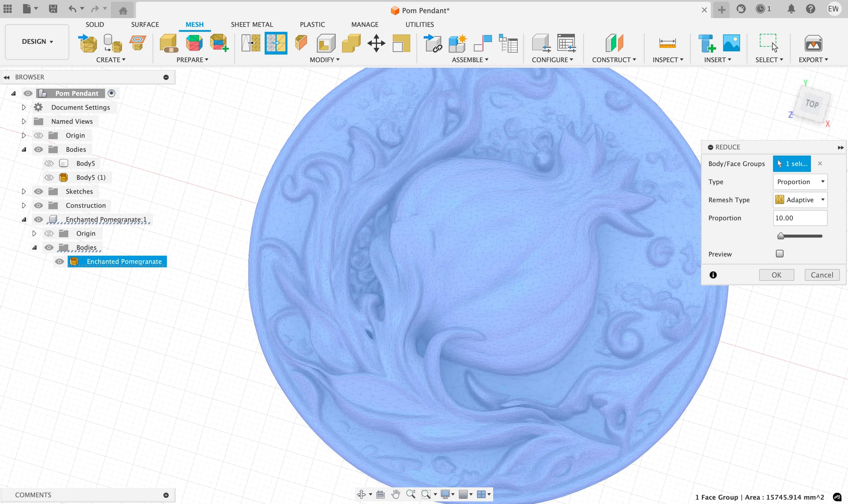When I tried to open the downloaded model, I immediately ran into an issue – the geometry was incredibly complex, and my Fusion slowed to a crawl anytime I tried to do any action on it. You can tell from this image how detailed it was: