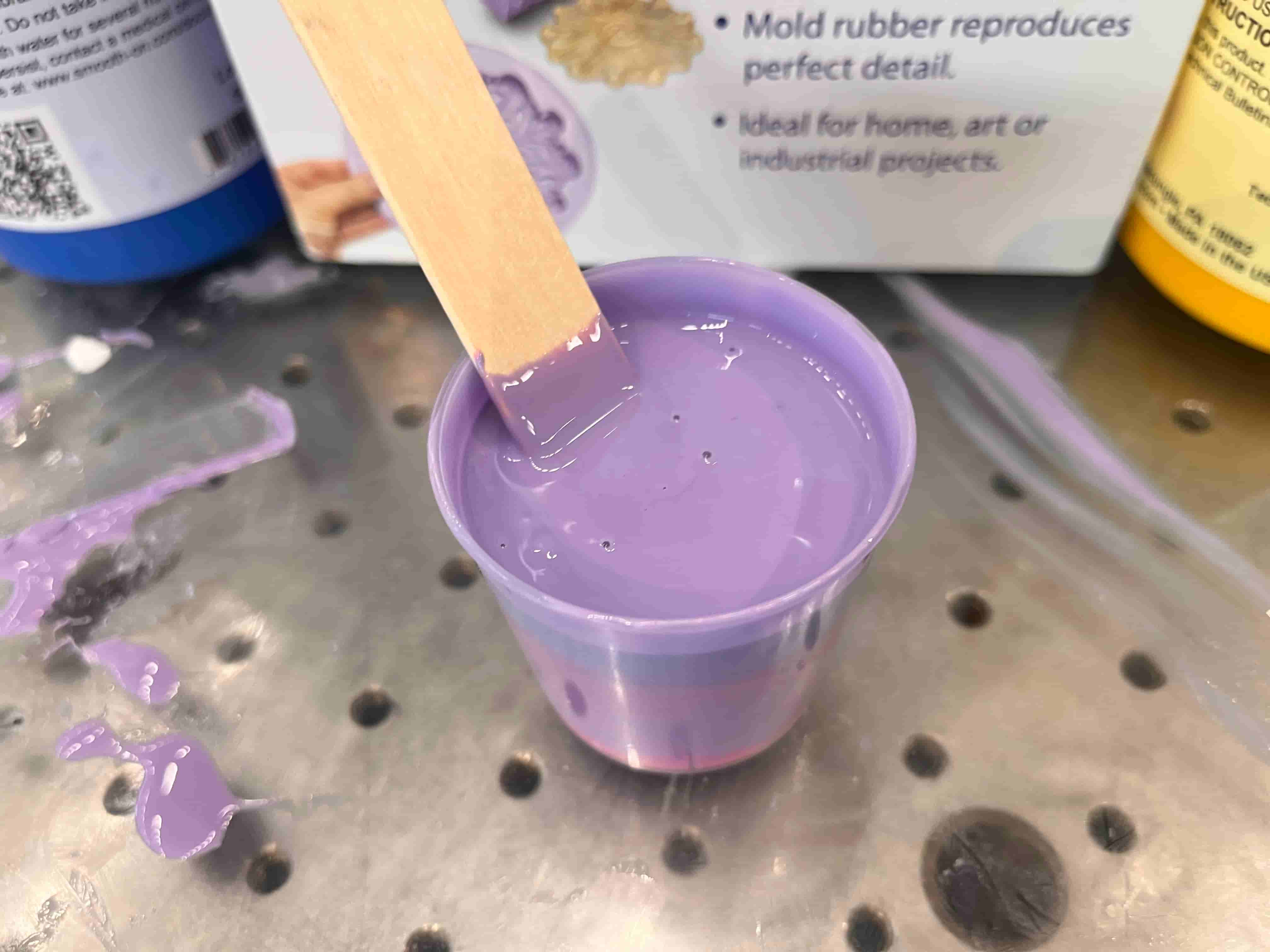 I combined part A and part B in equal amounts, and mixed for a few minutes until everything seemed as unified as possible, and poured it into my wax mold: