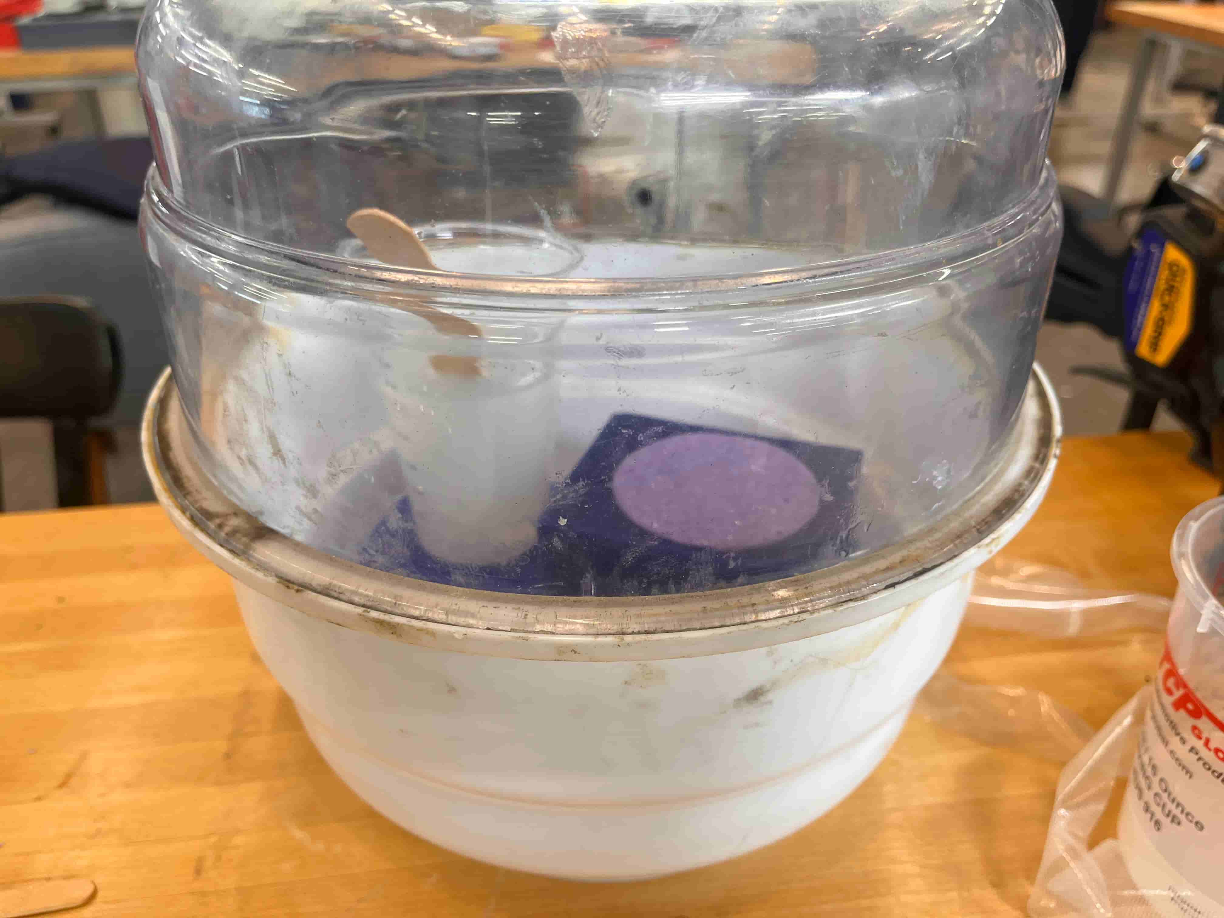 Bubbles can be a real issue, but some others in the class had formed a makeshift vacuum chamber to pull out the bubbles even more effectively. So I gave that a shot: