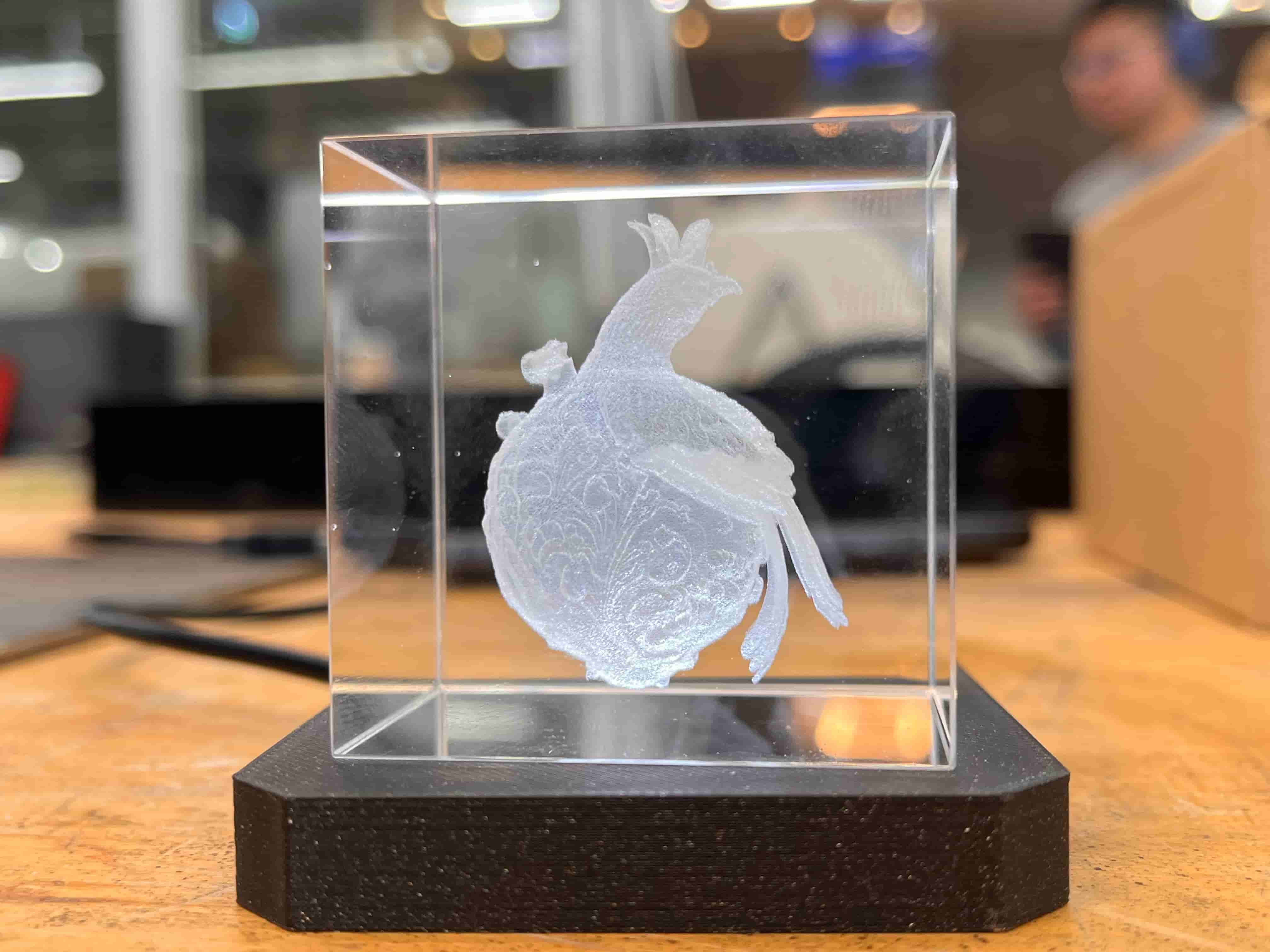 Quentin led this session, and taught us about the newly-arrived xTool F2 Ultra UV machine. We used K9 crystal cubes to engrave with, and were able to just drag in any 3D model (in .stl or .obj format) and process it with the xTool software. The group's documentation can be found here.