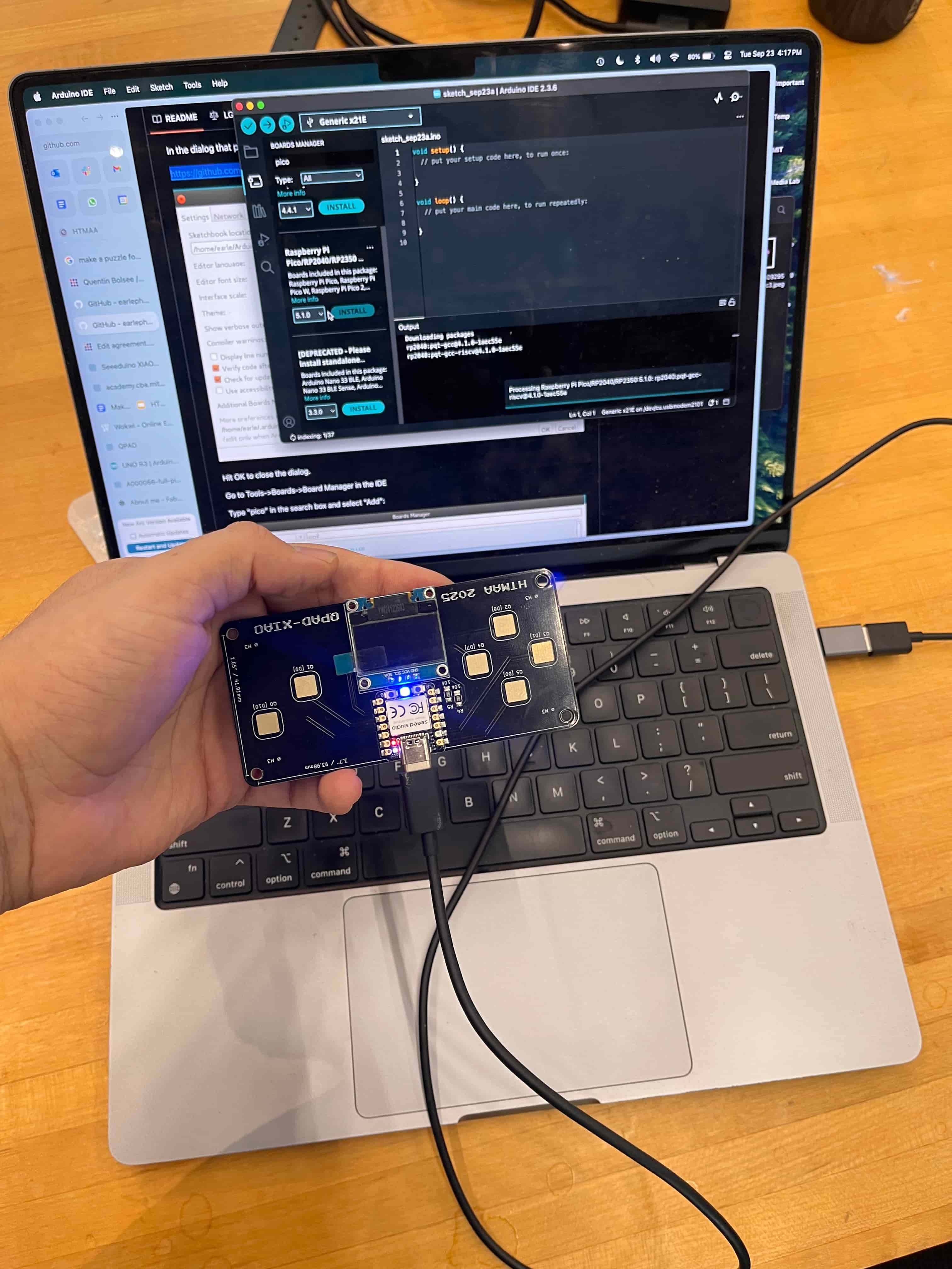 Future Eitan here - will be adding more documentation to these below, but this was the process of learning how to solder in the lab, followed by me doing another one to get a little better; then using the board to make a little capacative midi controller: