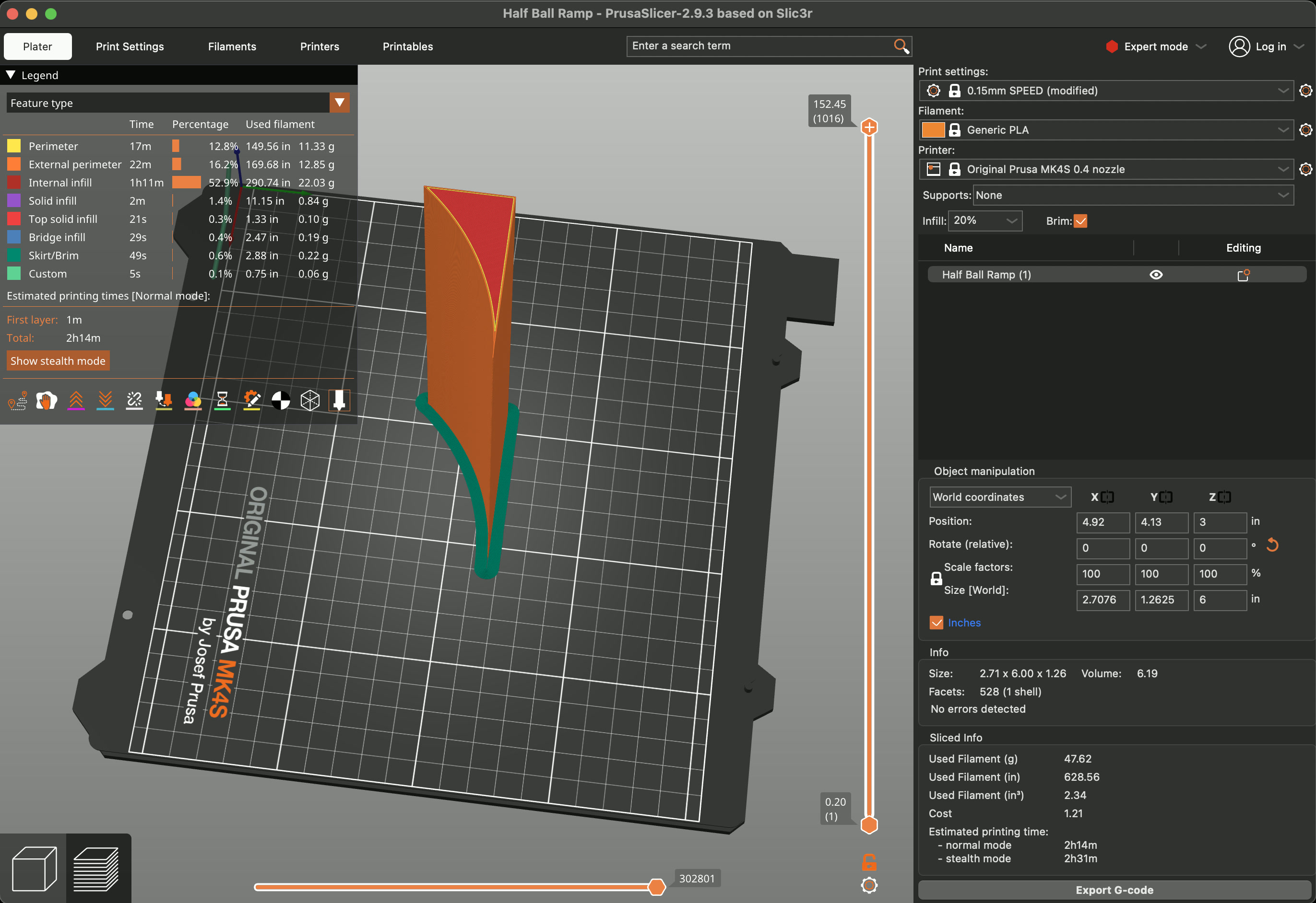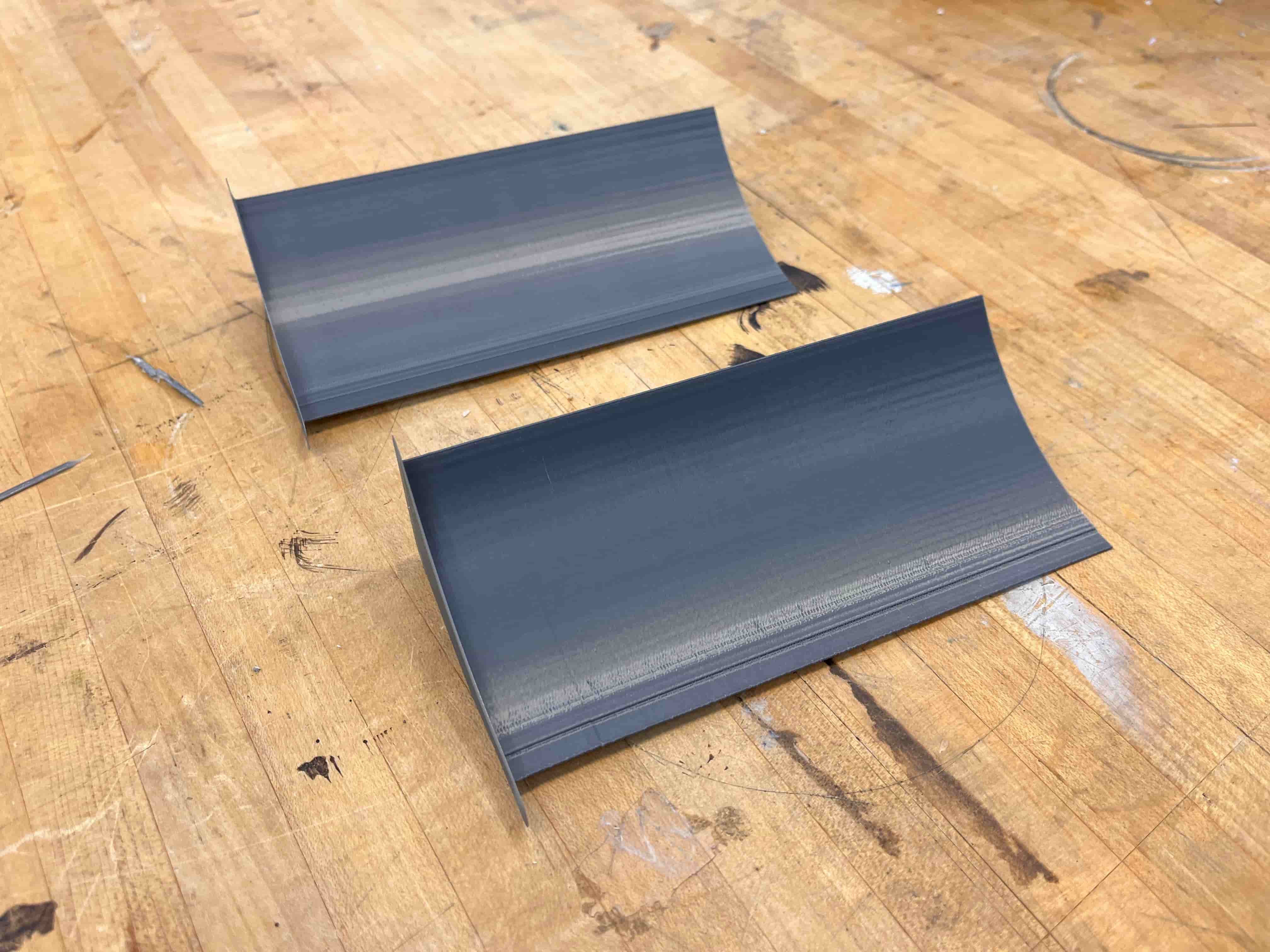 While the build looks really nice, the ShopBot wasn't going to work for the ramp portion of my Skee Ball build. So I decided to 3D print it, and just exported the ramp model from my Fusion file into Prusa.