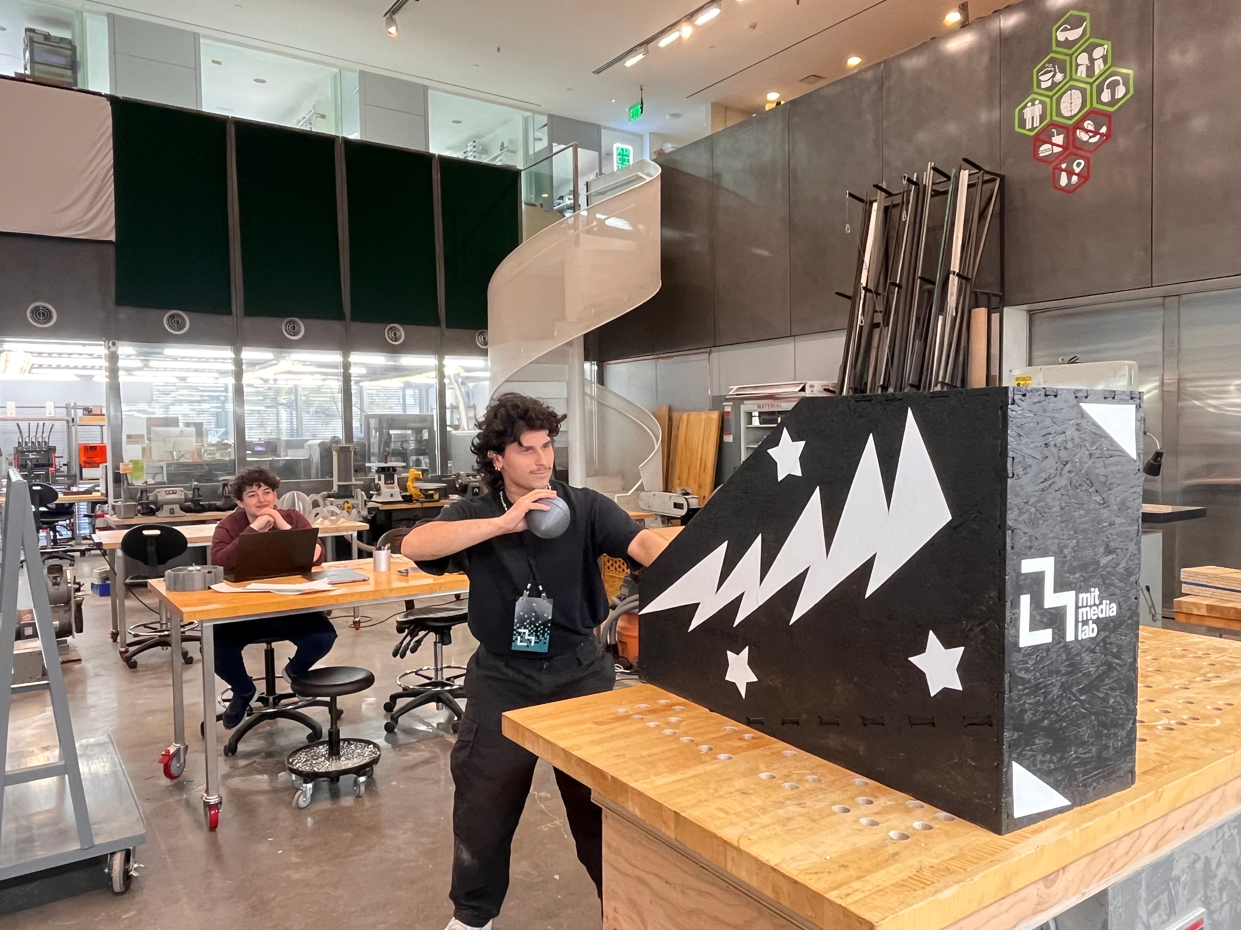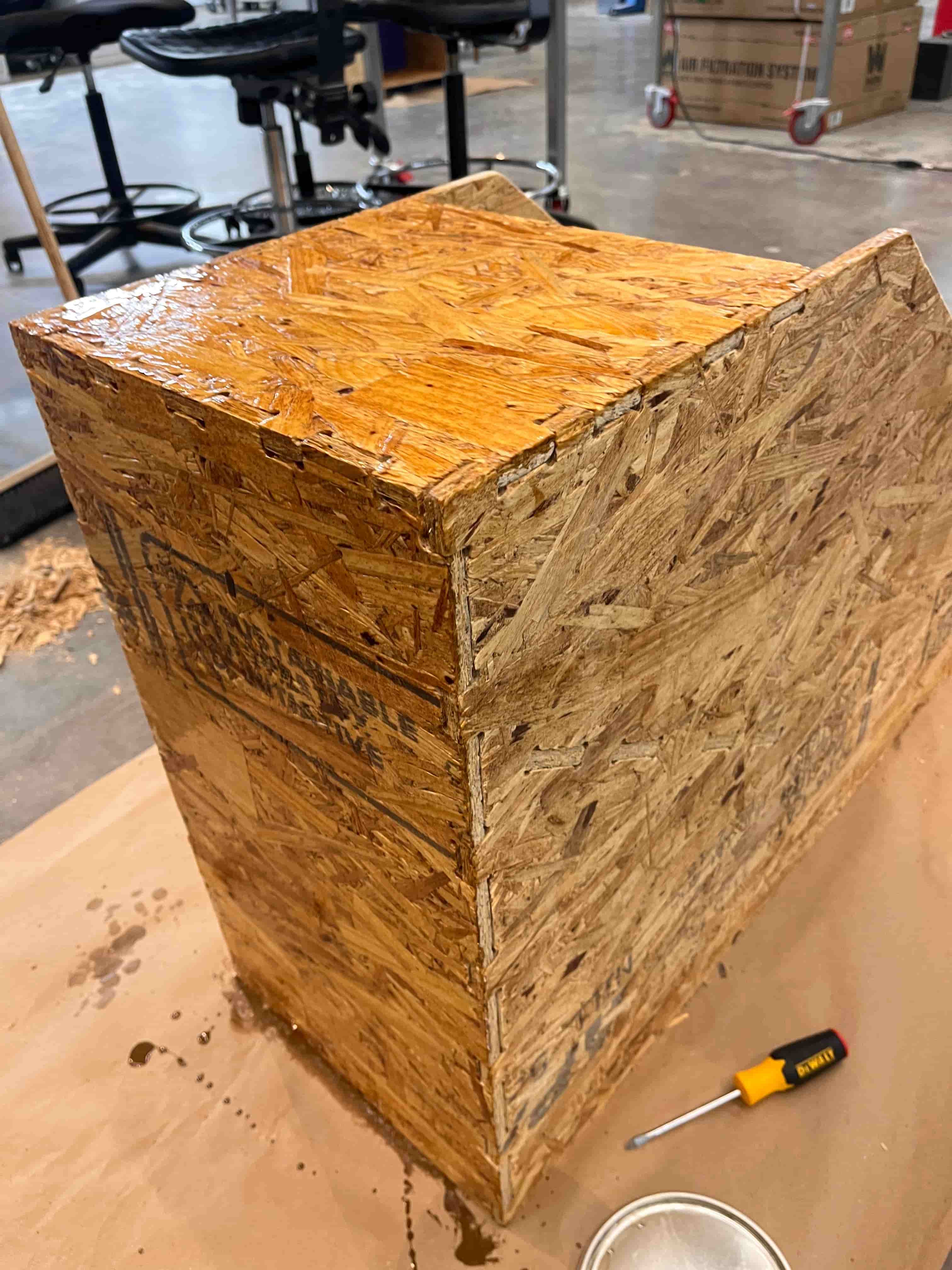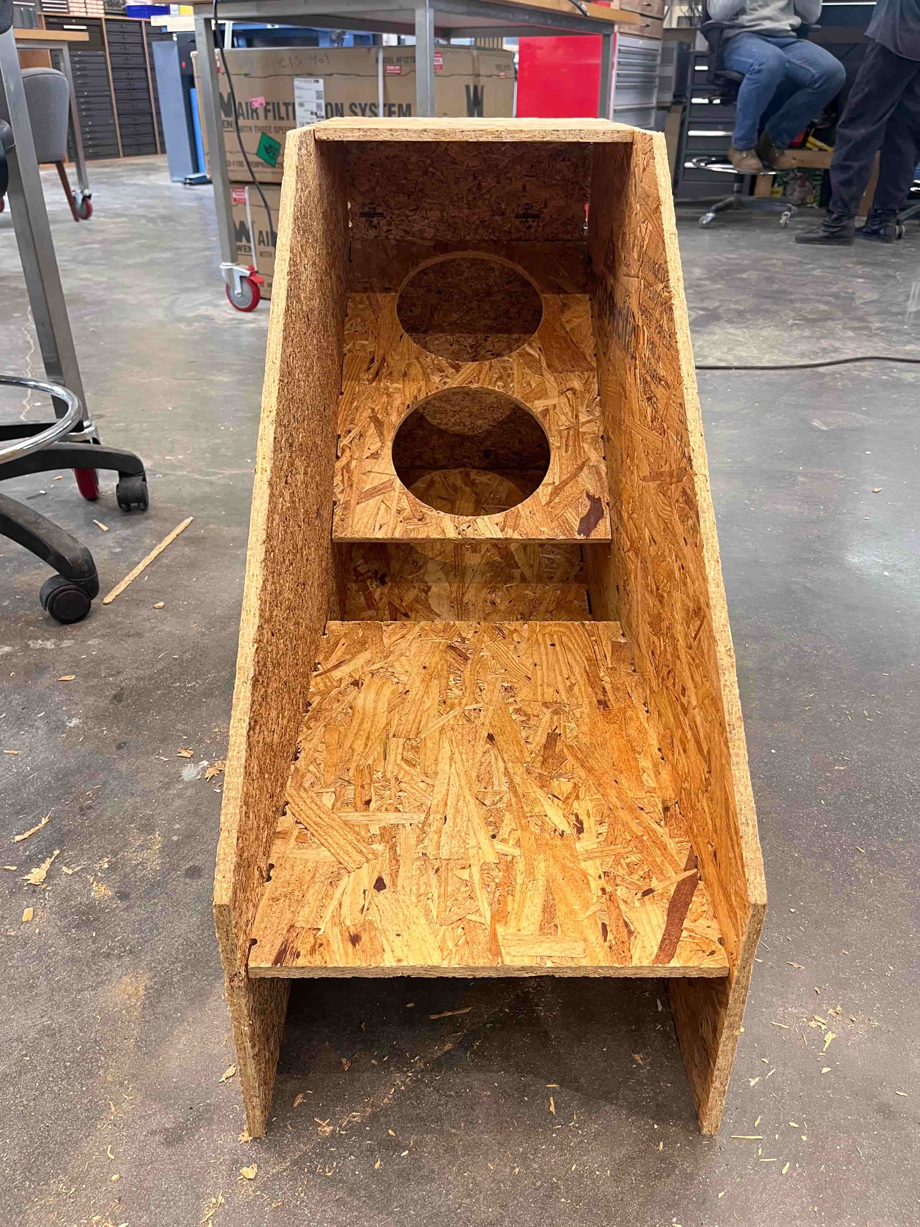 This week, we were tasked with "creating something large" out of wood. As someone with very little experience in construction ( outside of the occasional IKEA build), I needed to think of the right thing to build for my skill level. At first, I was thinking something simple –– a chair, a table, a plant stand –– but instead, I wanted to challenge myself and make something fun. What was something with an easy enough shape, that's interactive and would be fun to watch Neil and other play?