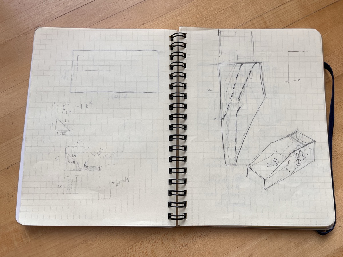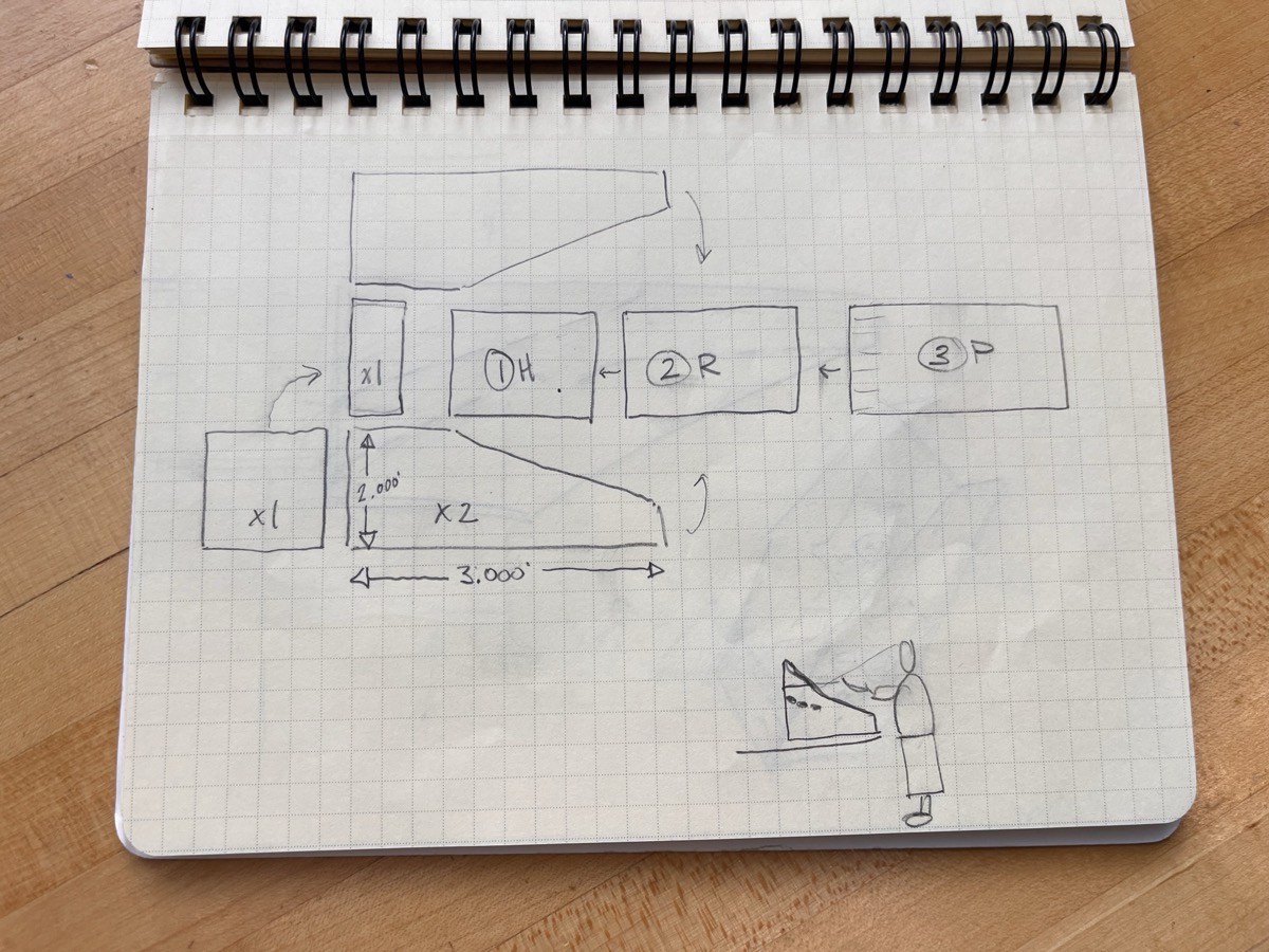 ...however, that didn't go too well, and I spent the better part of half an hour trying to sketch it out. Then a shining light appeared –– the man, the myth, the legend himself, Alphonso. He described his process, and how it is sometimes much easier to just start immediately working directly in 3D, allowing you to visualize how the pieces fit together a lot easier. So we started building.