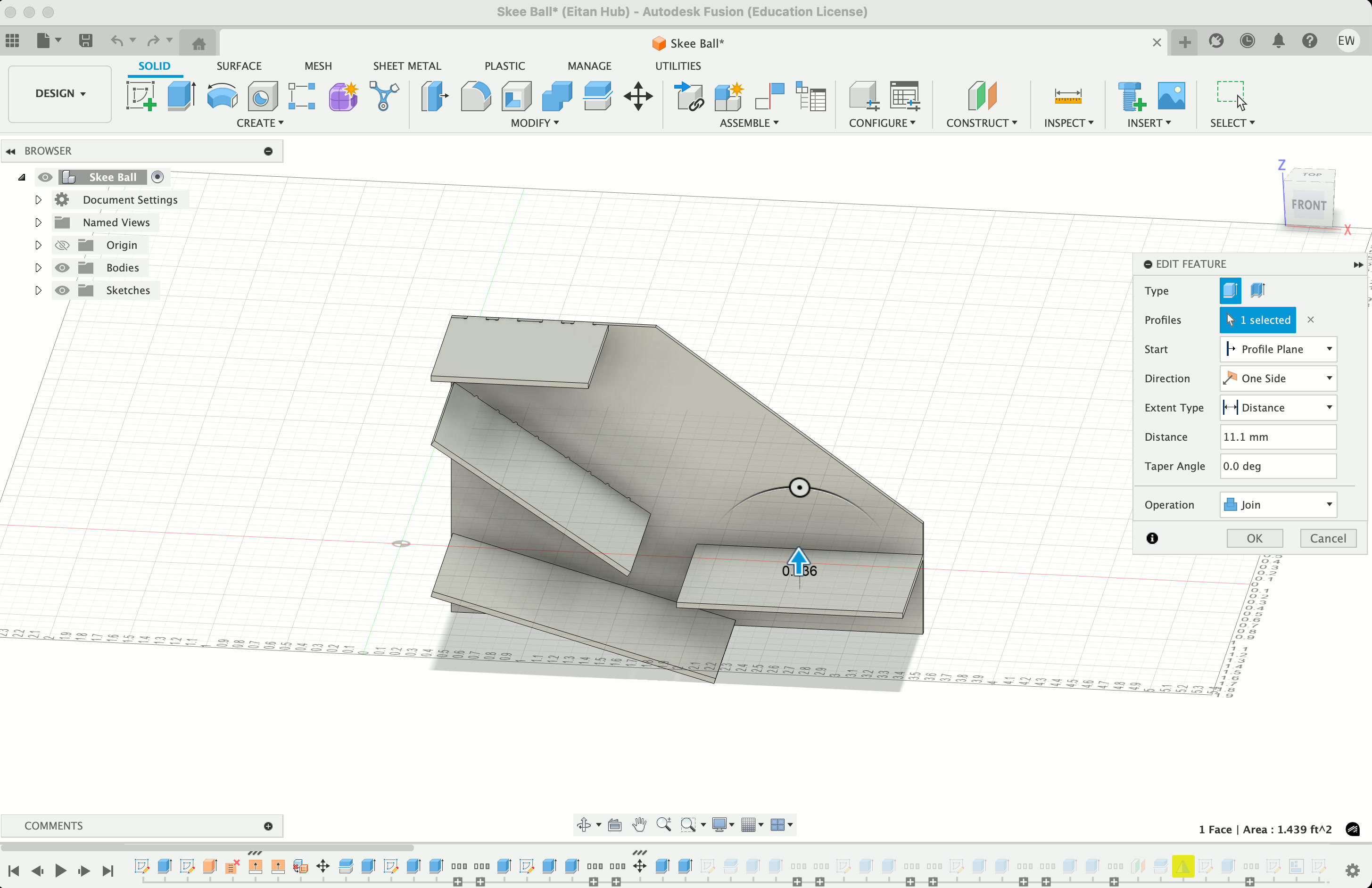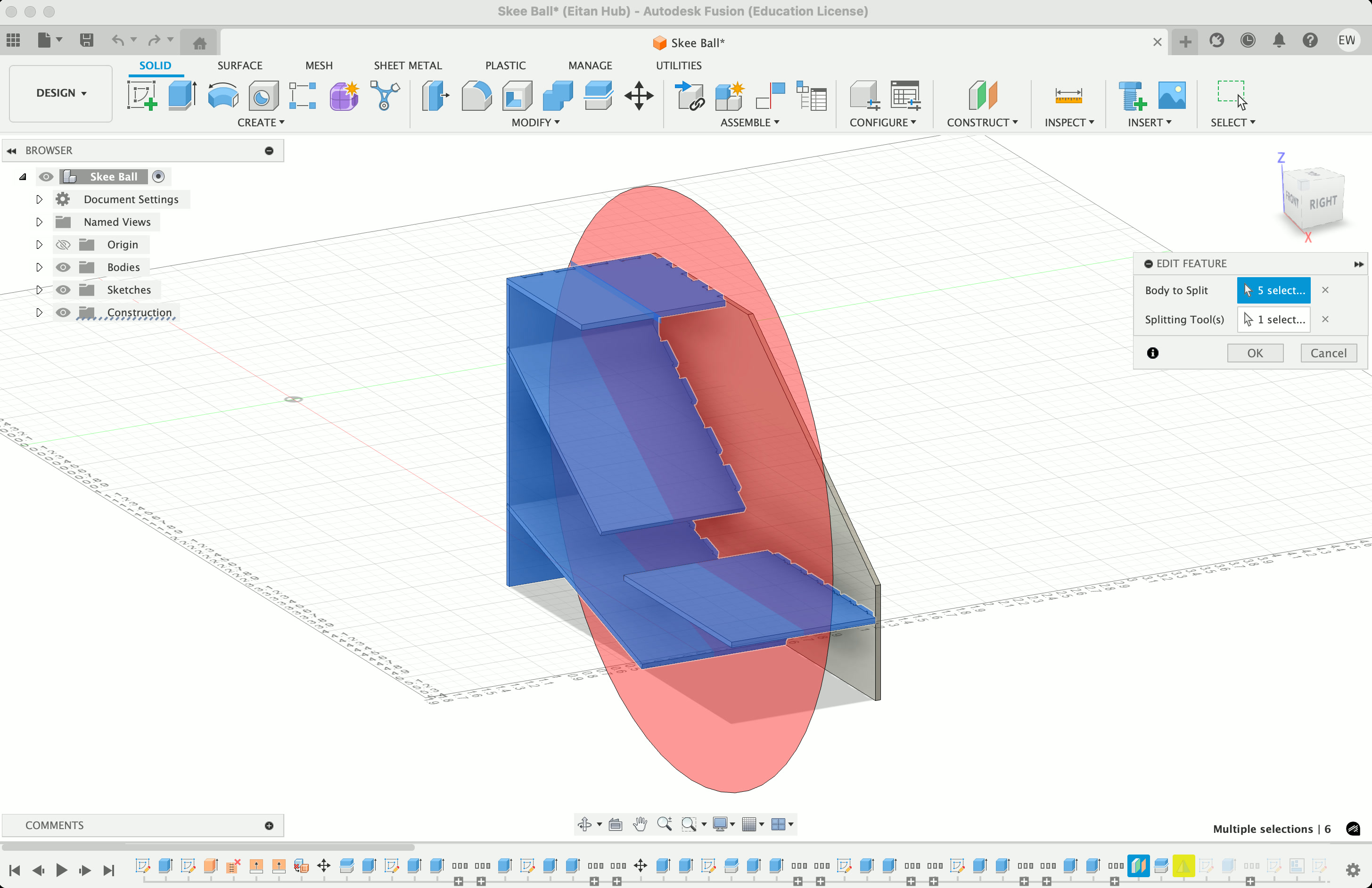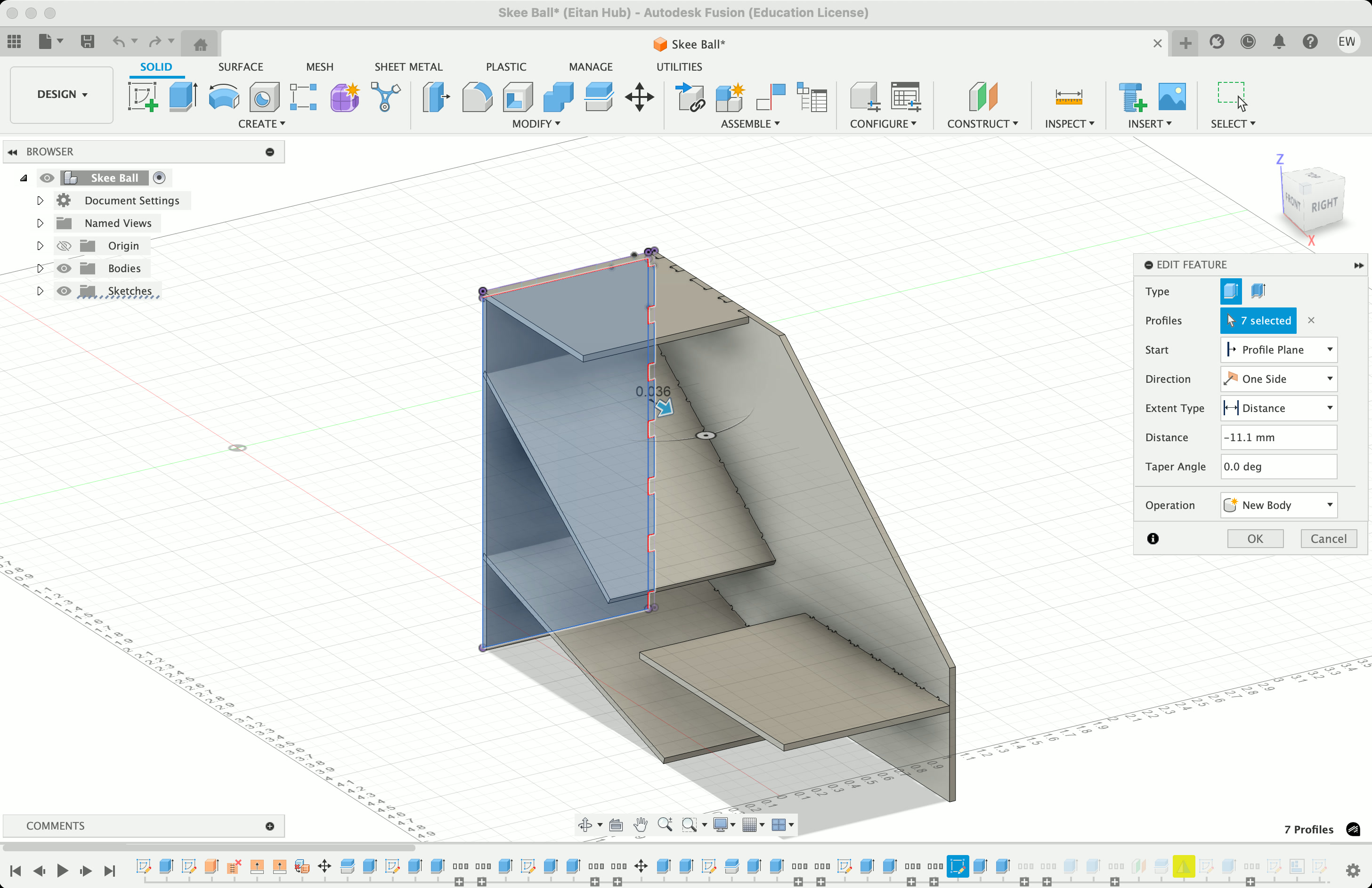 However, it was my time to cut, and I had barely begun modeling it in Fusion. With Dan's help (shoutout Dan!!) we broke the pieces down into discreet pieces, giving me enough confidence to begin modeling.
