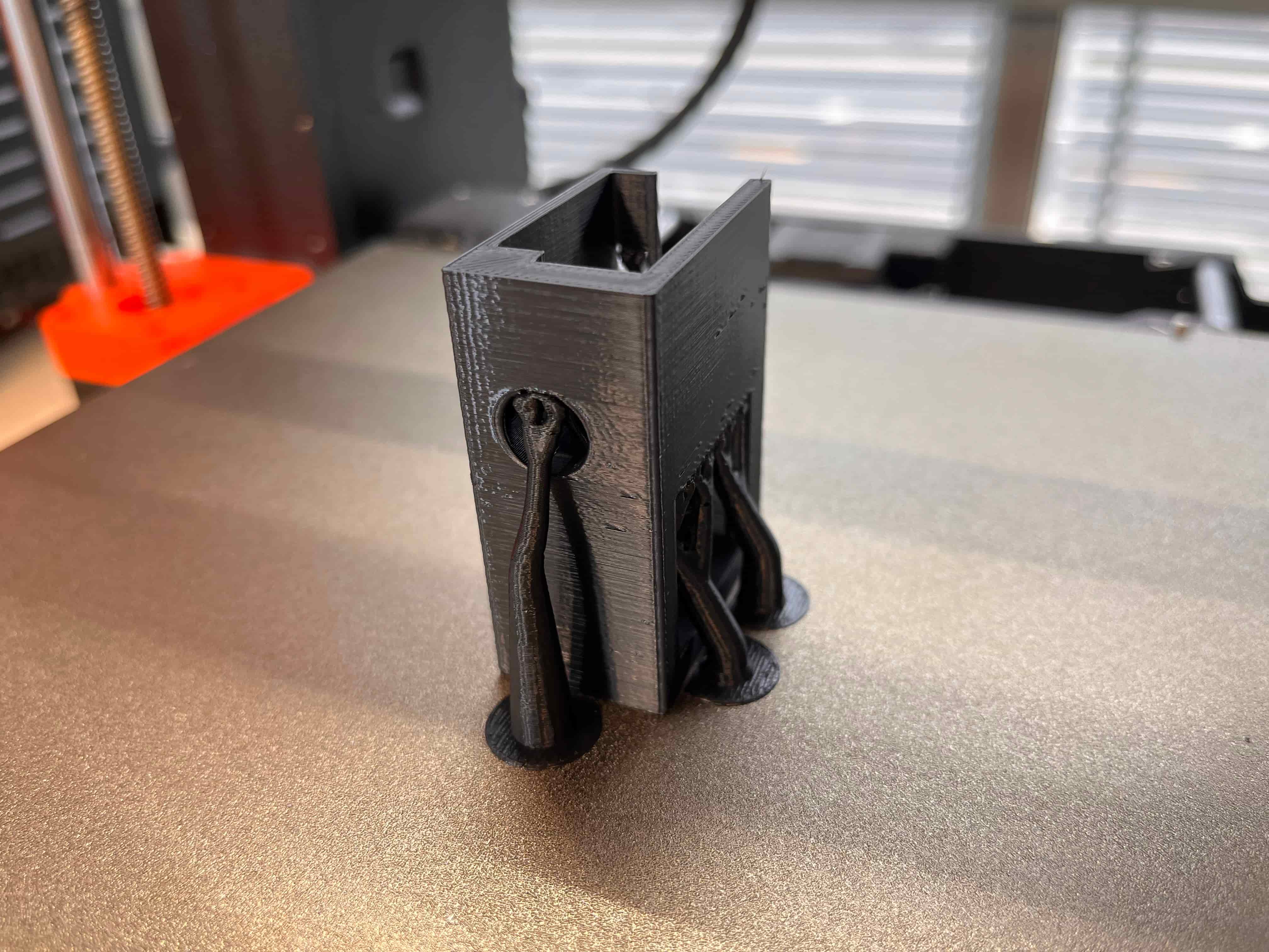 Unfortunately, with the way I designed this housing, the chip/PCB couldn't actually slide in – but that's ok! We live, we learn, we try again. I wasn't able to snap a photo of it in time, but I think I was really close; I just have to remember to think through what everything will take to get in and stay in, rather than design around the PCB assuming it's already encased.