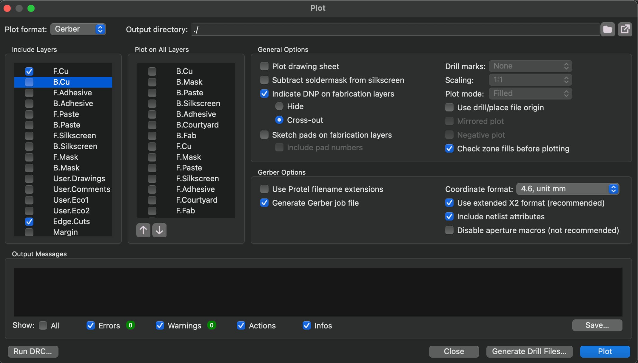 Lastly, I exported my Gerber files as well and generated the Drill files which I will use in the next step to mill my board. Make sure you generate the Drill files, because I milled two test boards before I realized why the holes weren't included!