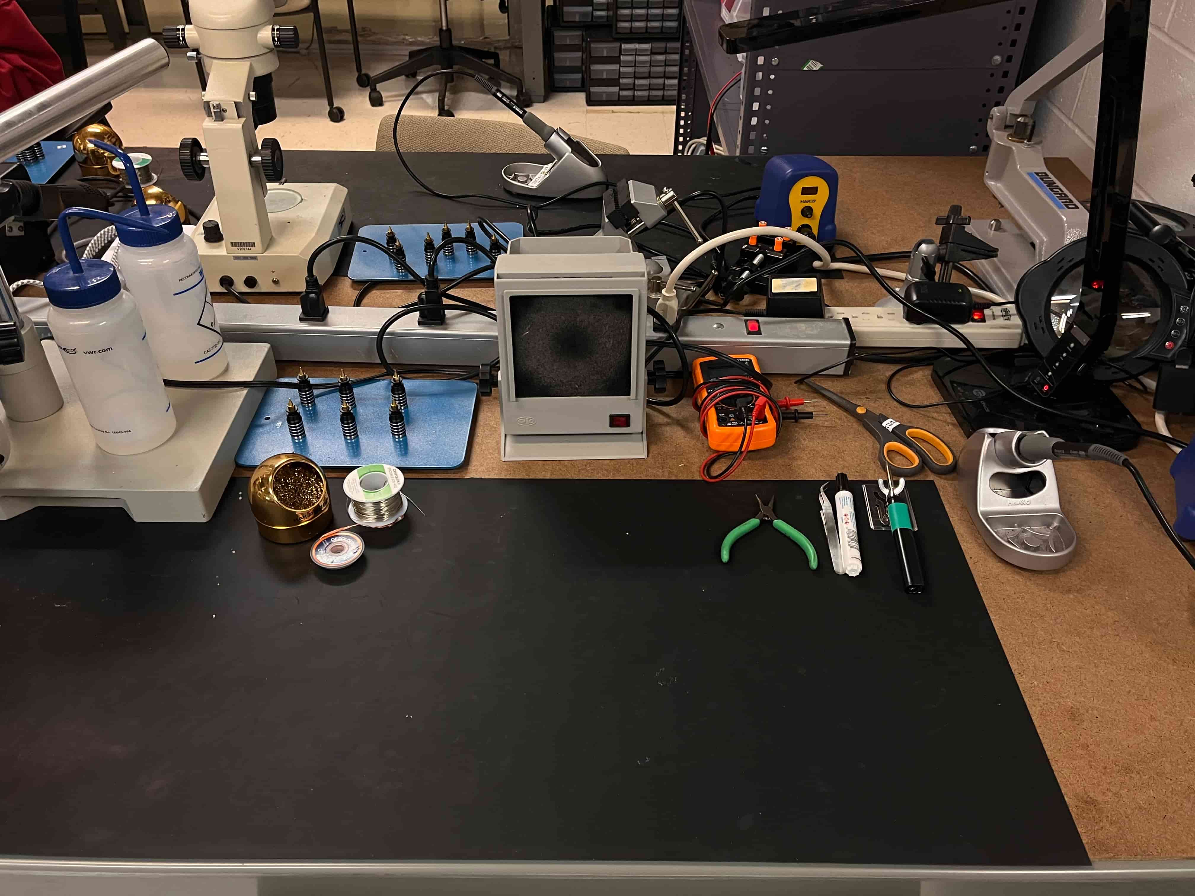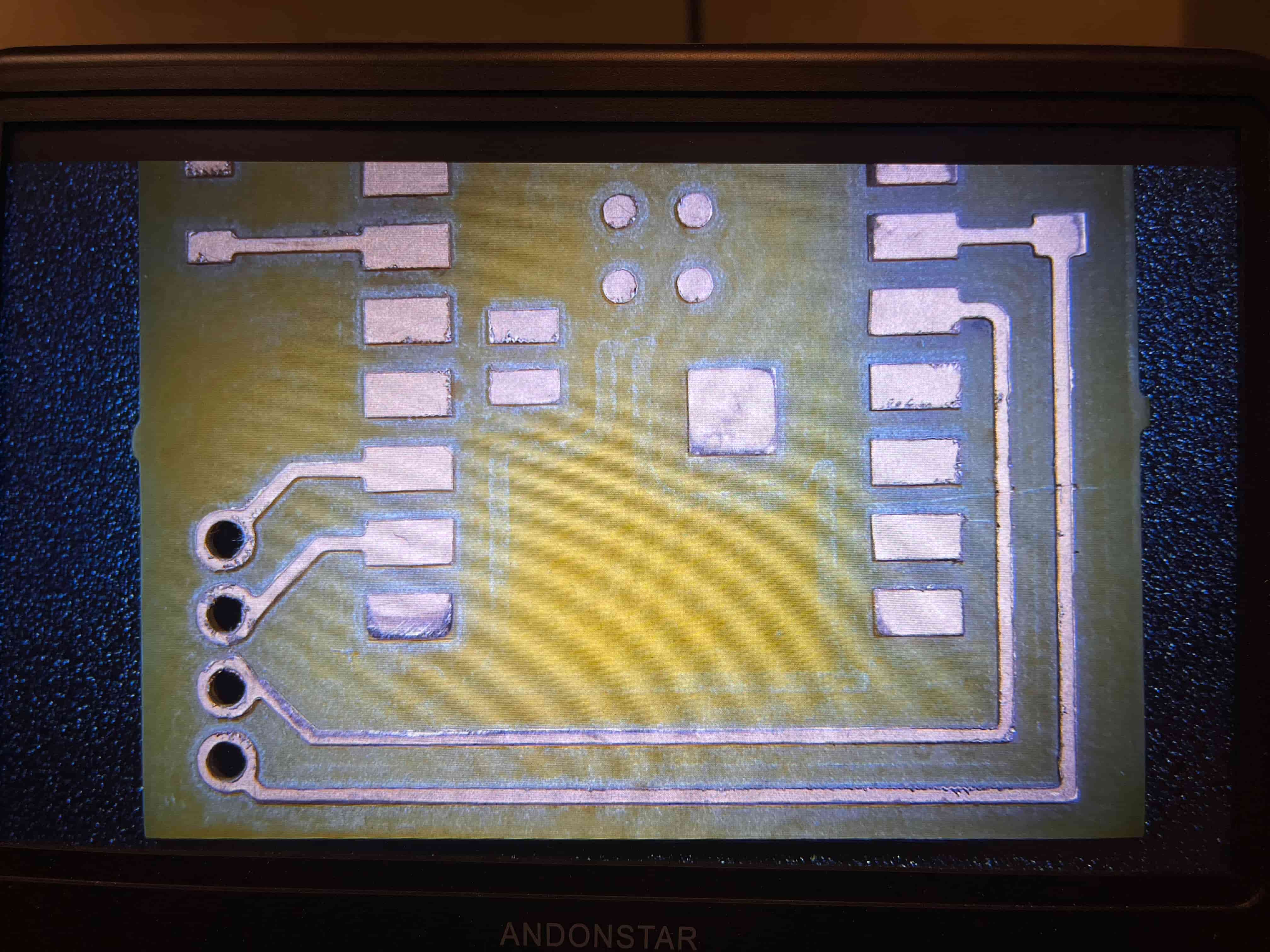 Oh well. Back to the drawing board! I went through the process again, this time making sure the milling machine showed the holes in 3D. Then milled, sanded, polished, etc and even checked it under the microscope to make sure everything looked good. All seems well, so I soldered on my components and moved on.