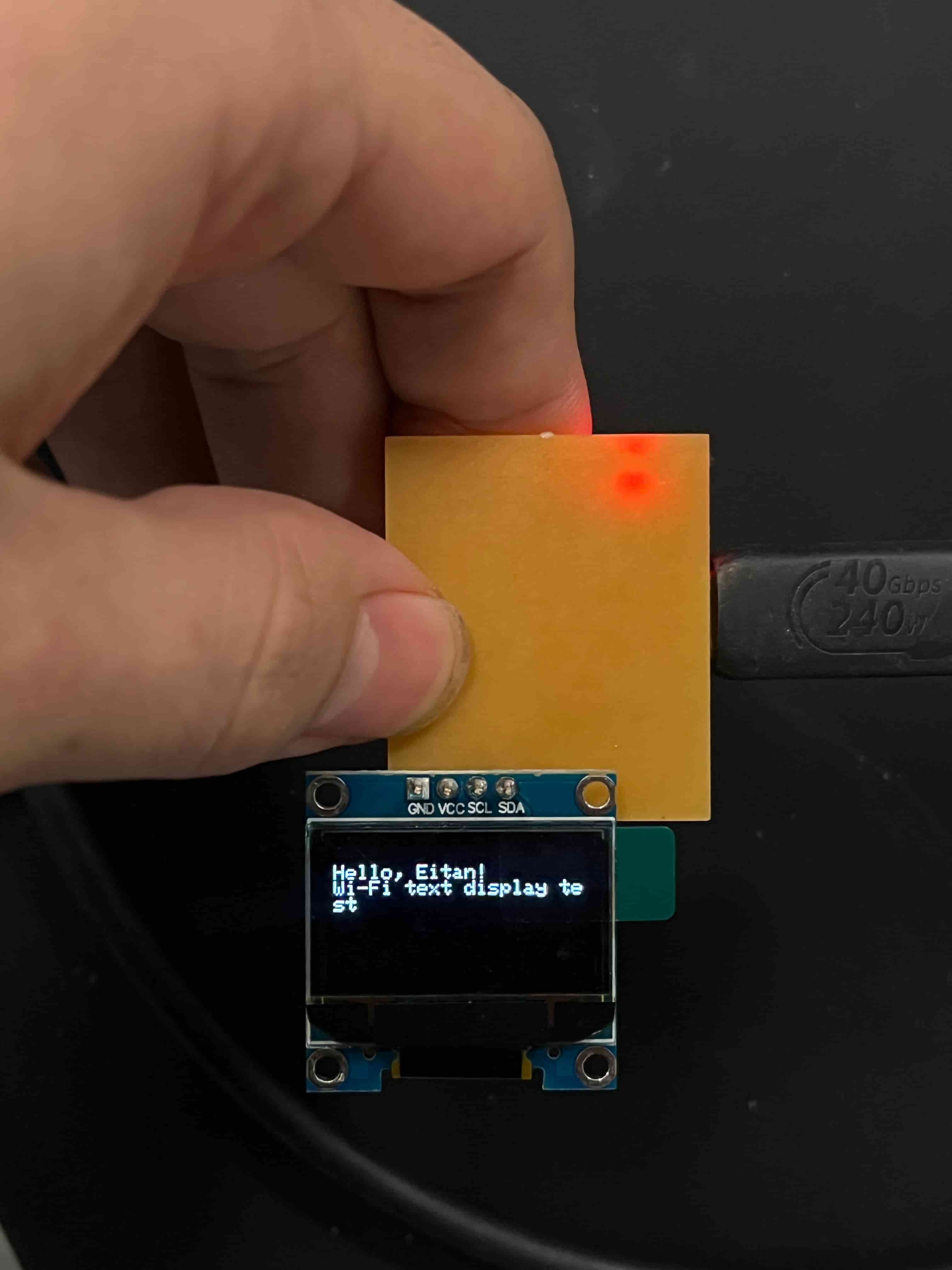 Now that I had the full board, I wanted to test the WiFI messaging capabilities! I used ChatGPT to generate some Arduino code, first just to test the LED and display to make sure everything was connected properly. You can find that code in the section above, or here.