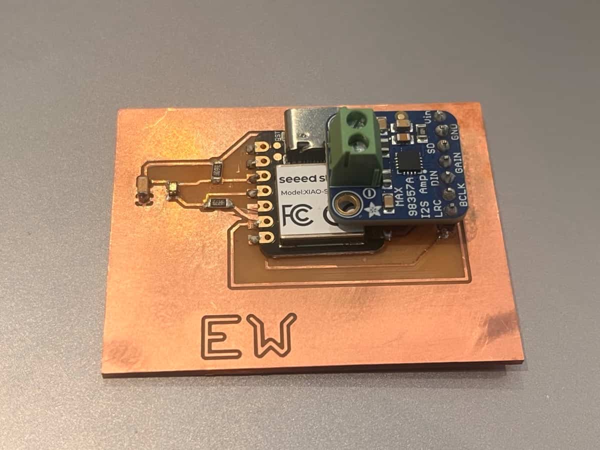 After that, I added in my capacitors and resistors, and began working on adding the microcontroller and speaker amplifier.