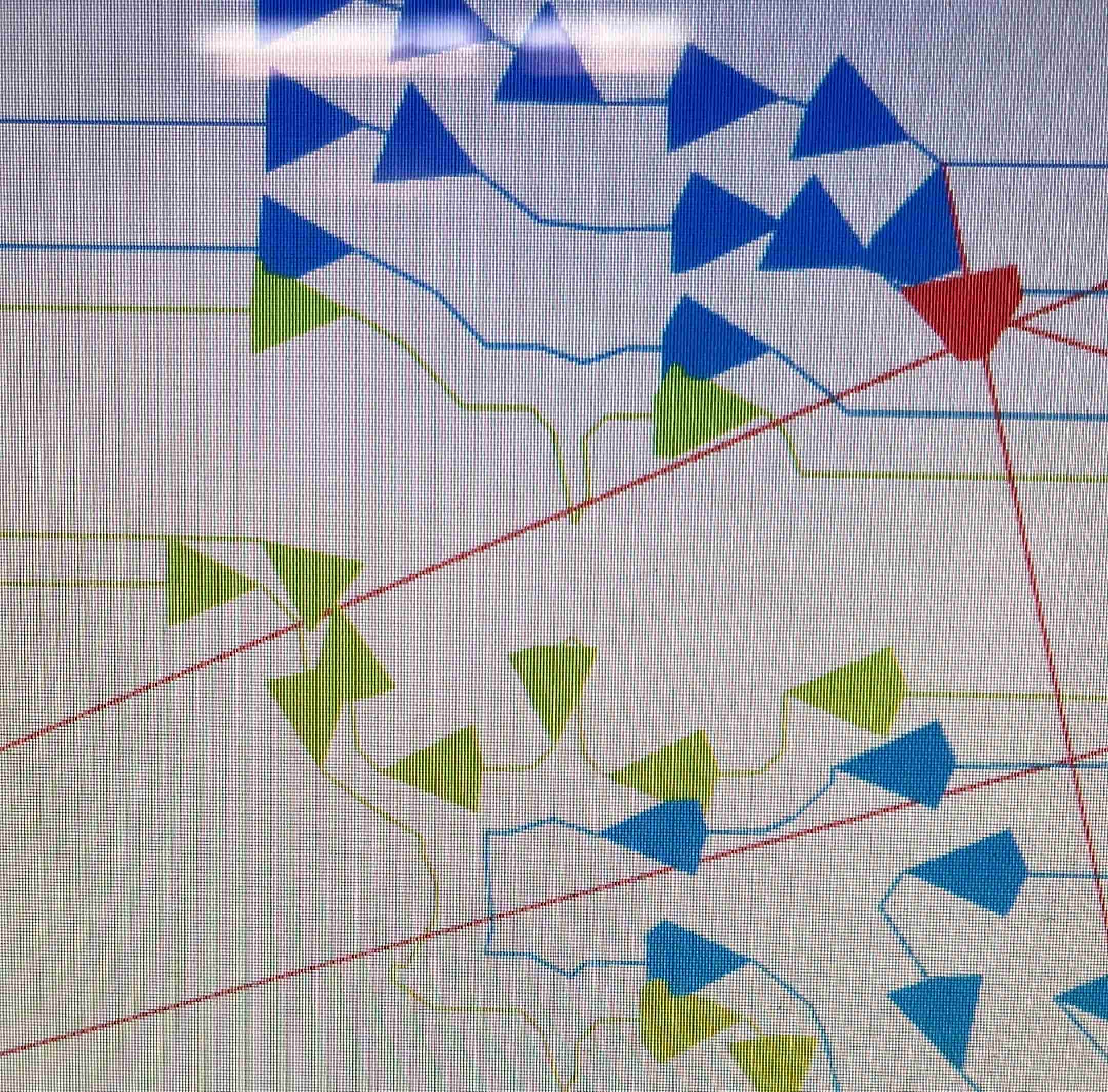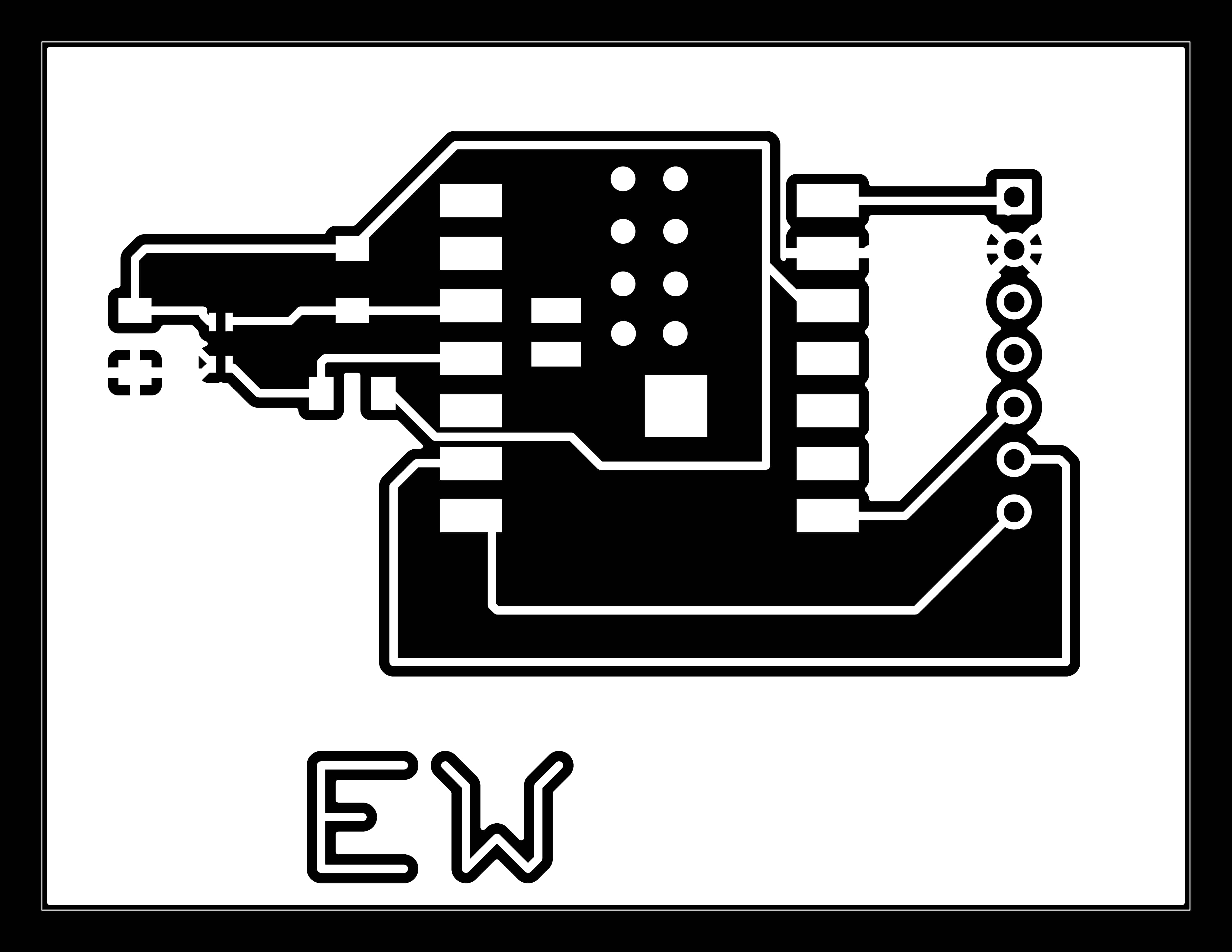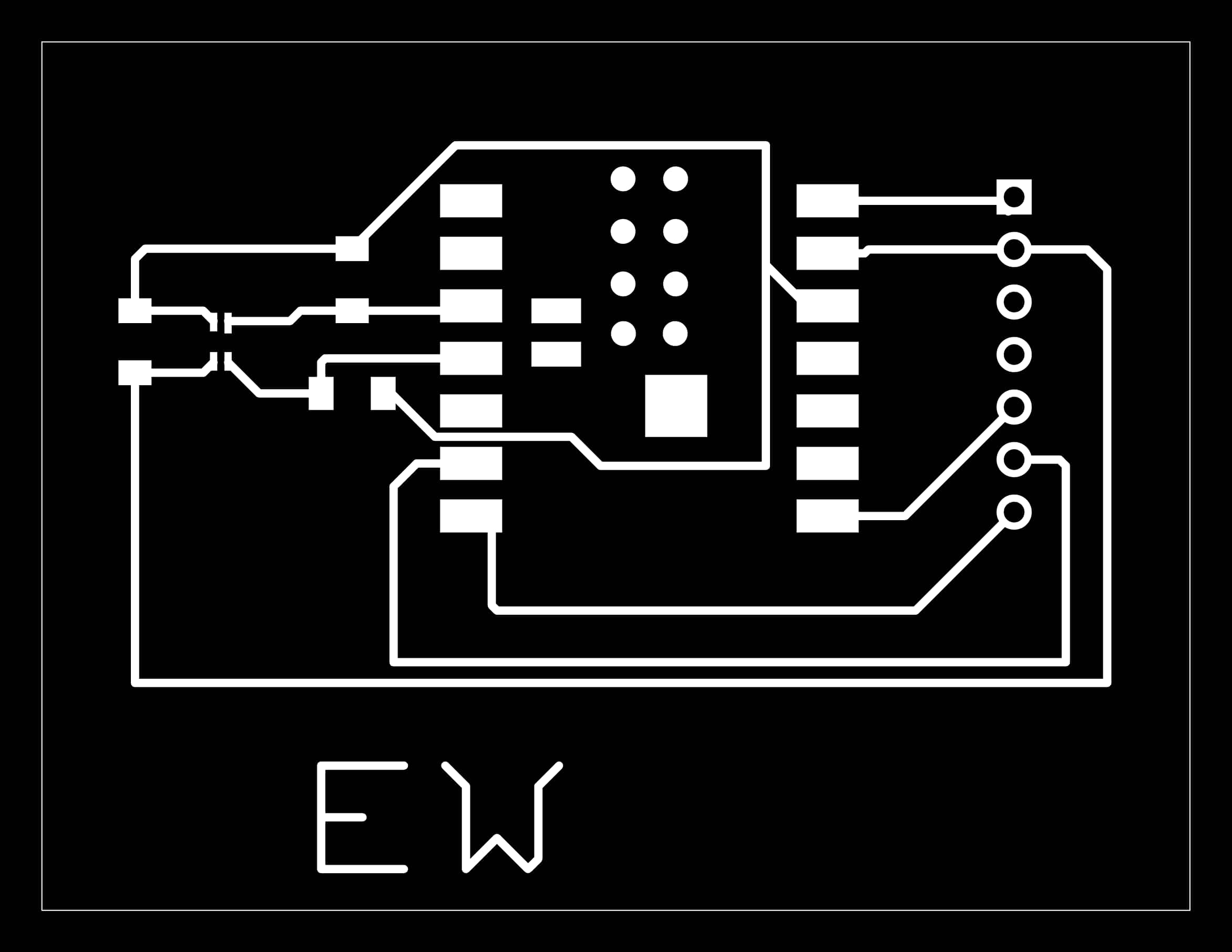Just like last week, from KiCAD I generated my Gerber and Drill files, and dropped them into Quentin's "gerber2image tool." Here's the trace .png from that process: