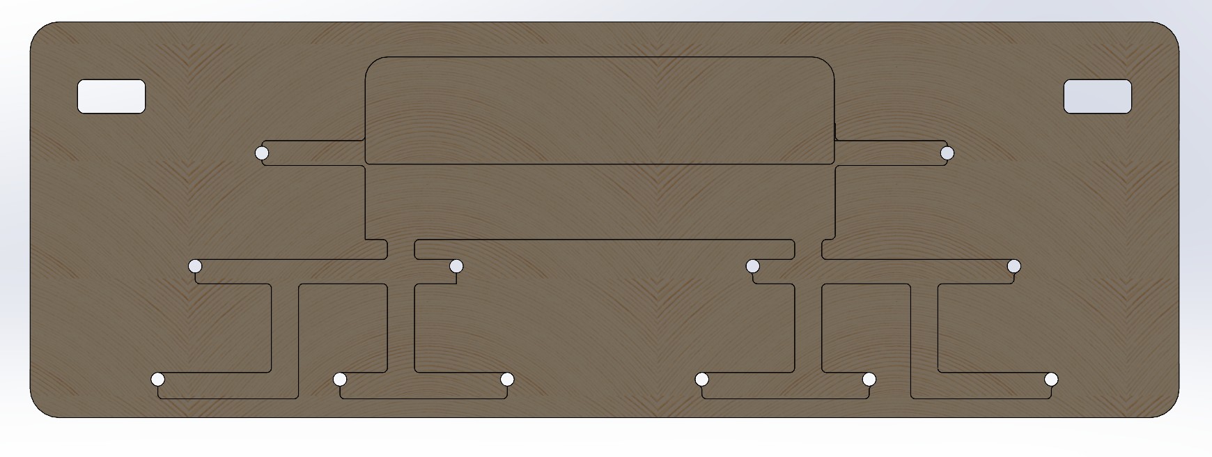 I still have a lot of post-processing to do. I plan to do the fillets shown in the schematic by hand, drill the holes for the lights and hang holes with a drill press, and laser-cut plates for the center hole backing