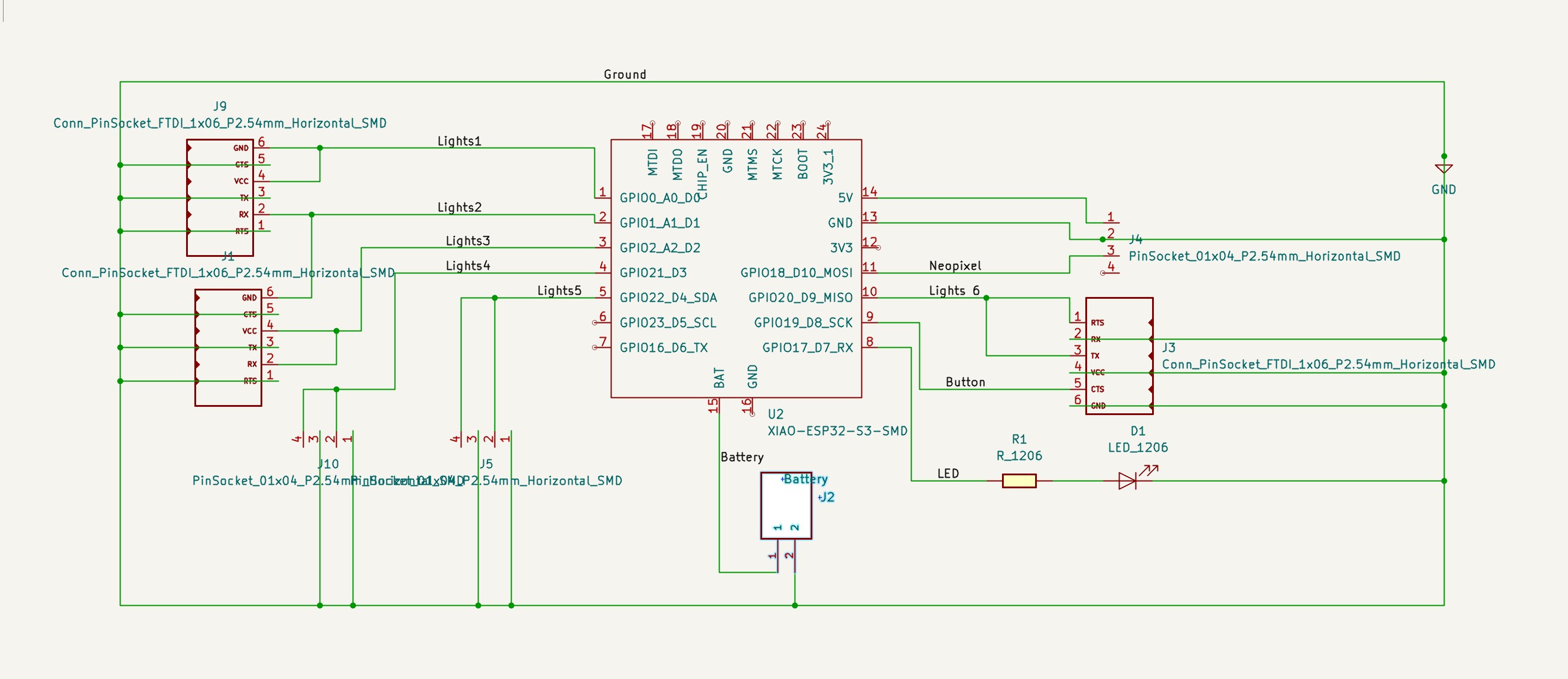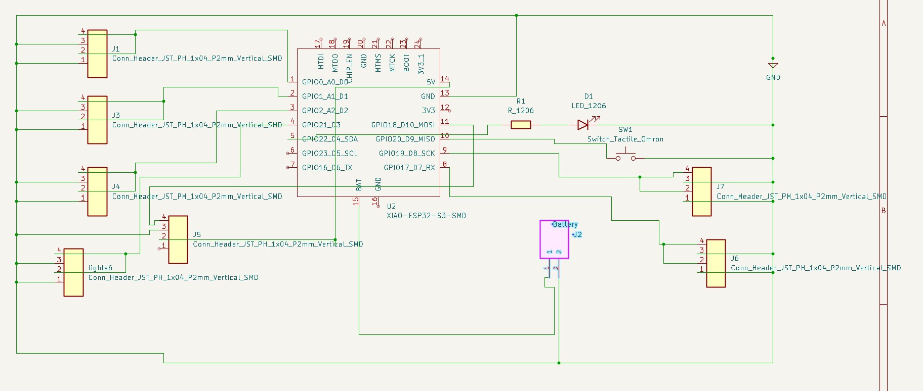 Week 9 PCB schematic featuring the lights for the holds, switch, and non-bluetooth speaker(wasnt able to make work):