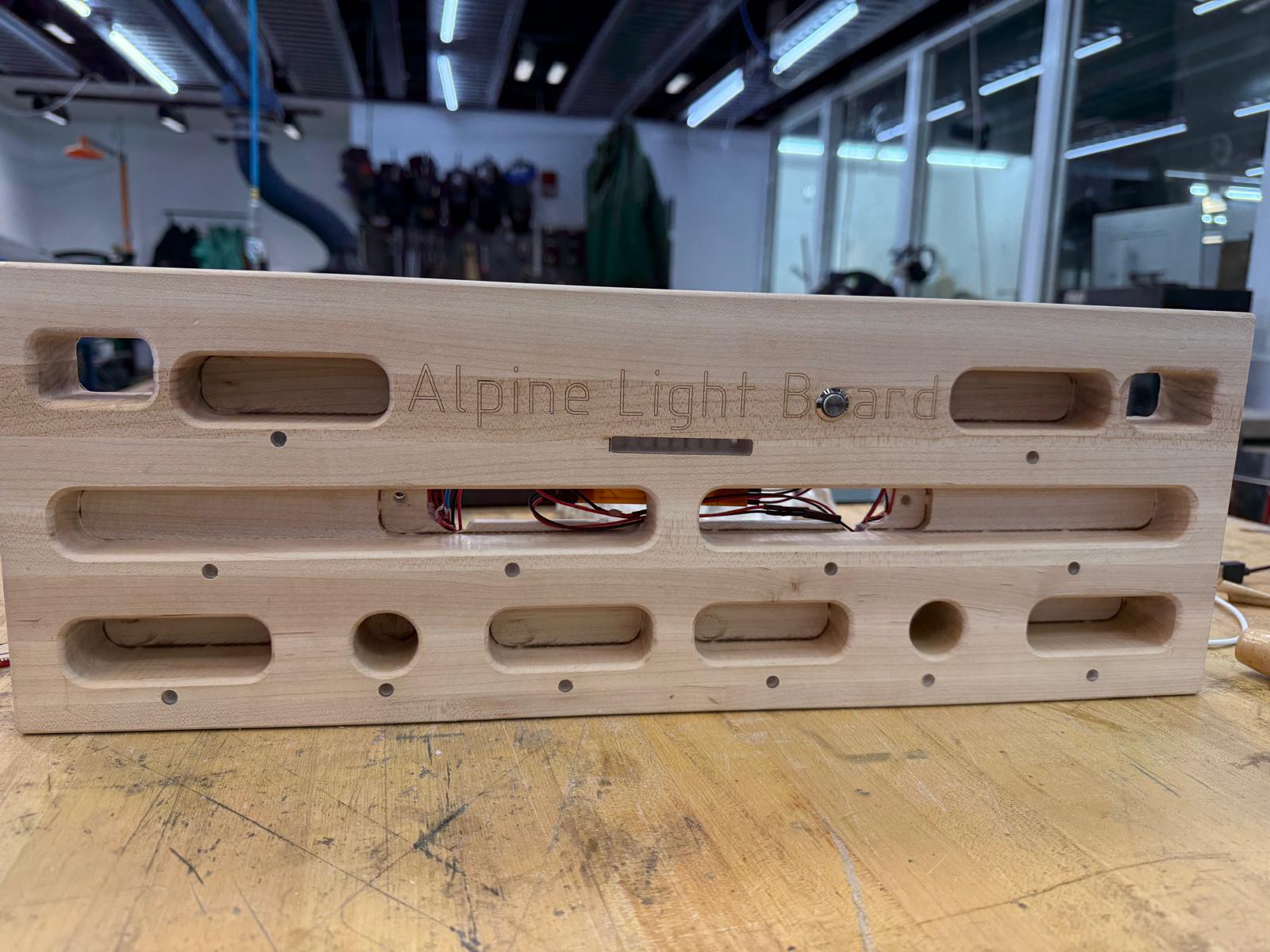 I placed the LEDs and neopixels in the slots in the back of the board, metal laser cut a back-plate from Aluminum