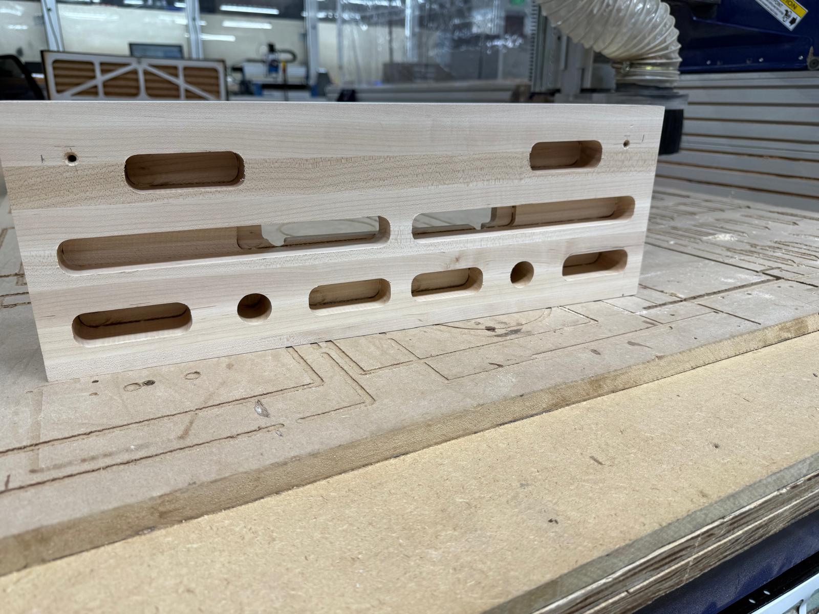 Overall, the first prototype turned out well! However, the zero shifted a little bit in the +y-axis which I didn't catch until it was too late. In the future, maybe I want the first cut to be the bottom right edge fillet.