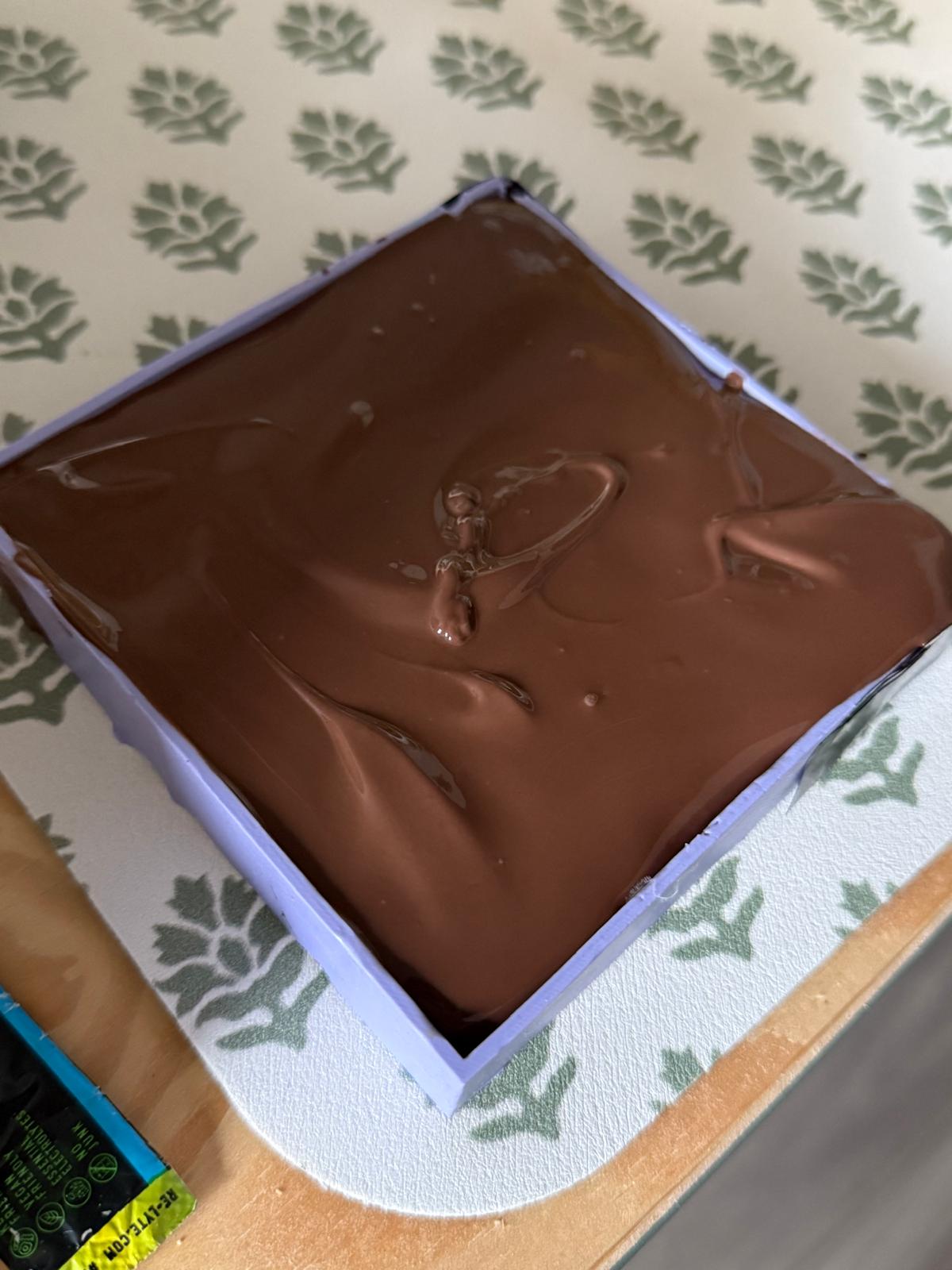 I also decided to still use chocolate even though I can't eat it. I used the molding chocolates and microwaved them for one minute, stopping and stirring every 30 seconds. I got a little impatient waiting for the chocolate to dry, and when I took it out it fractured.