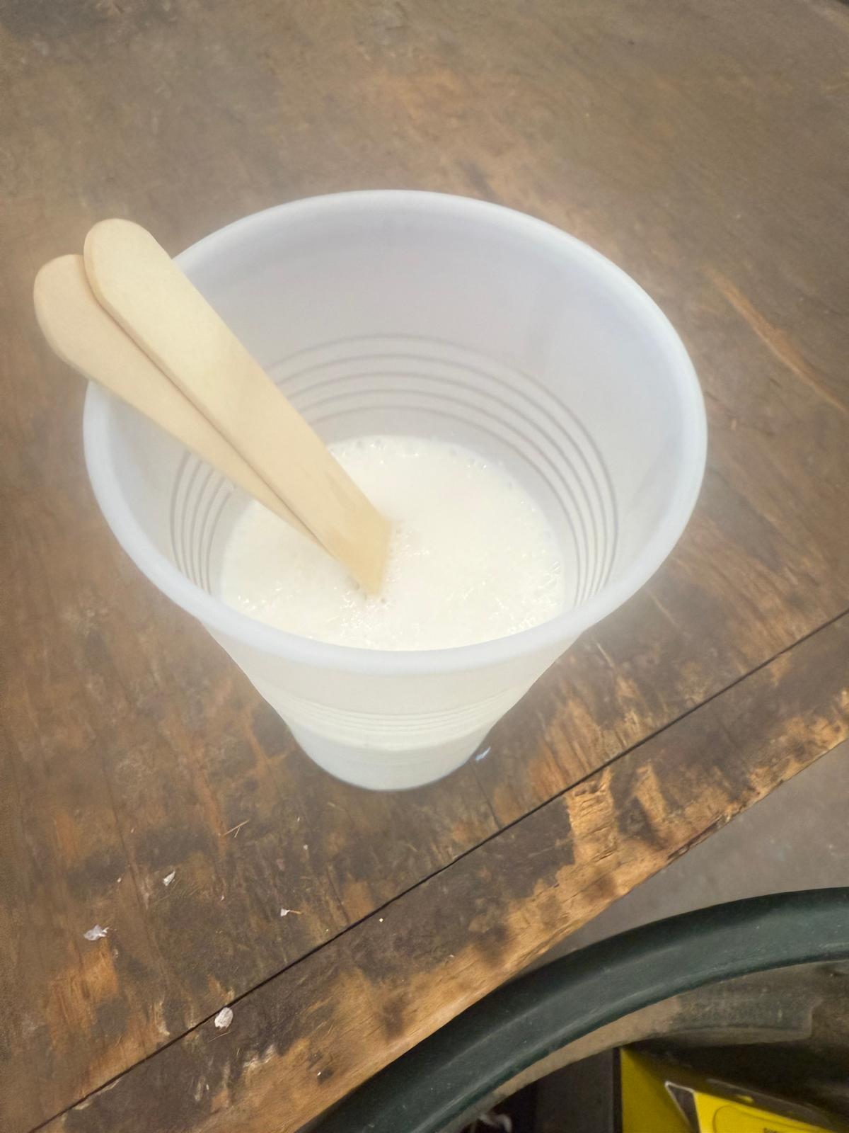 Try 2. I secured the area with hot glue after failing to get duct tape, electrical tape, etc., to stick to the mold's sides.