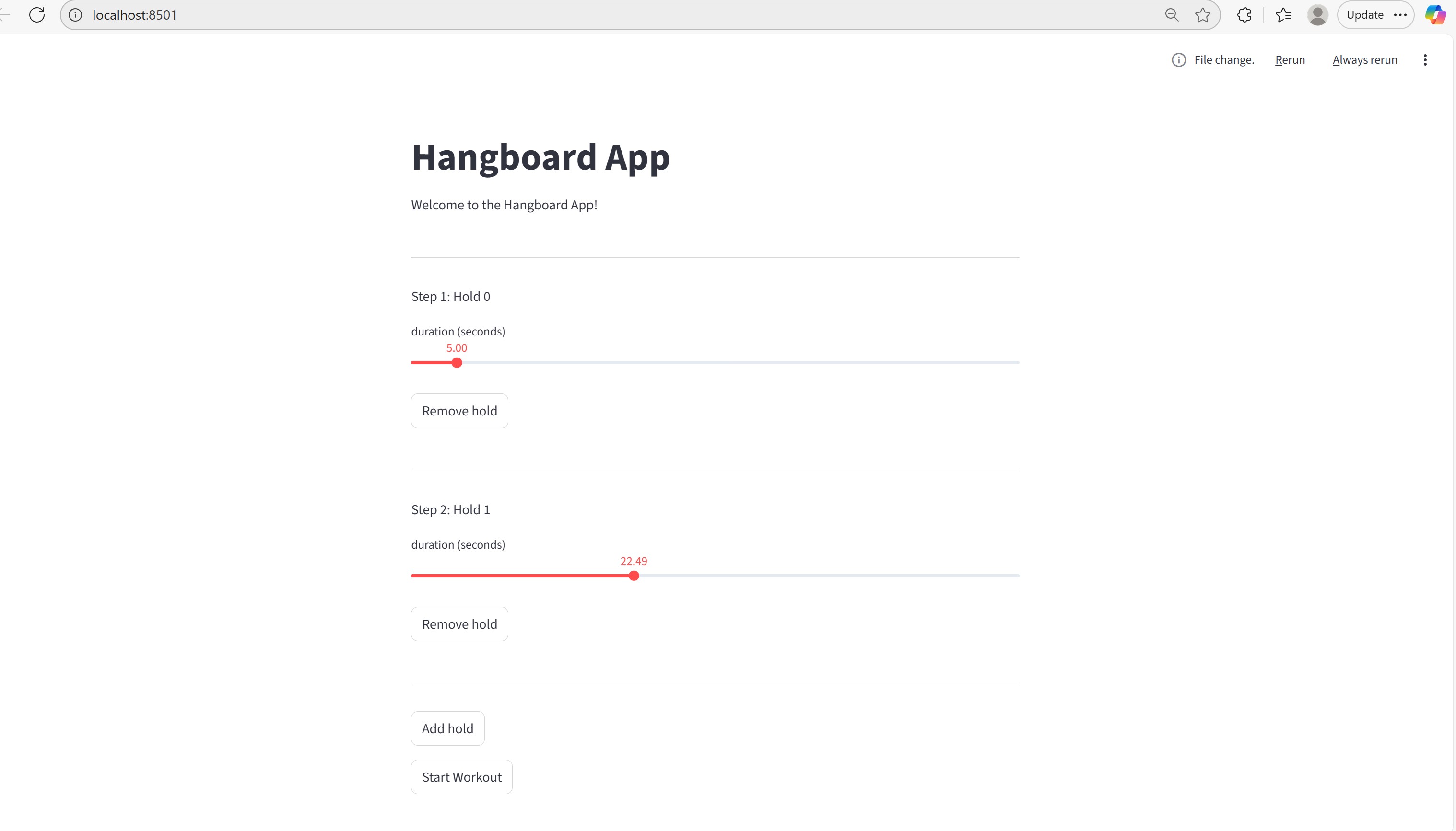 Next, I asked ChatGPT to help me add a section in for it to receive inputs based off Hold #, Duration, rest time, and initial rest time after pressing the start button (I will likely delete this).