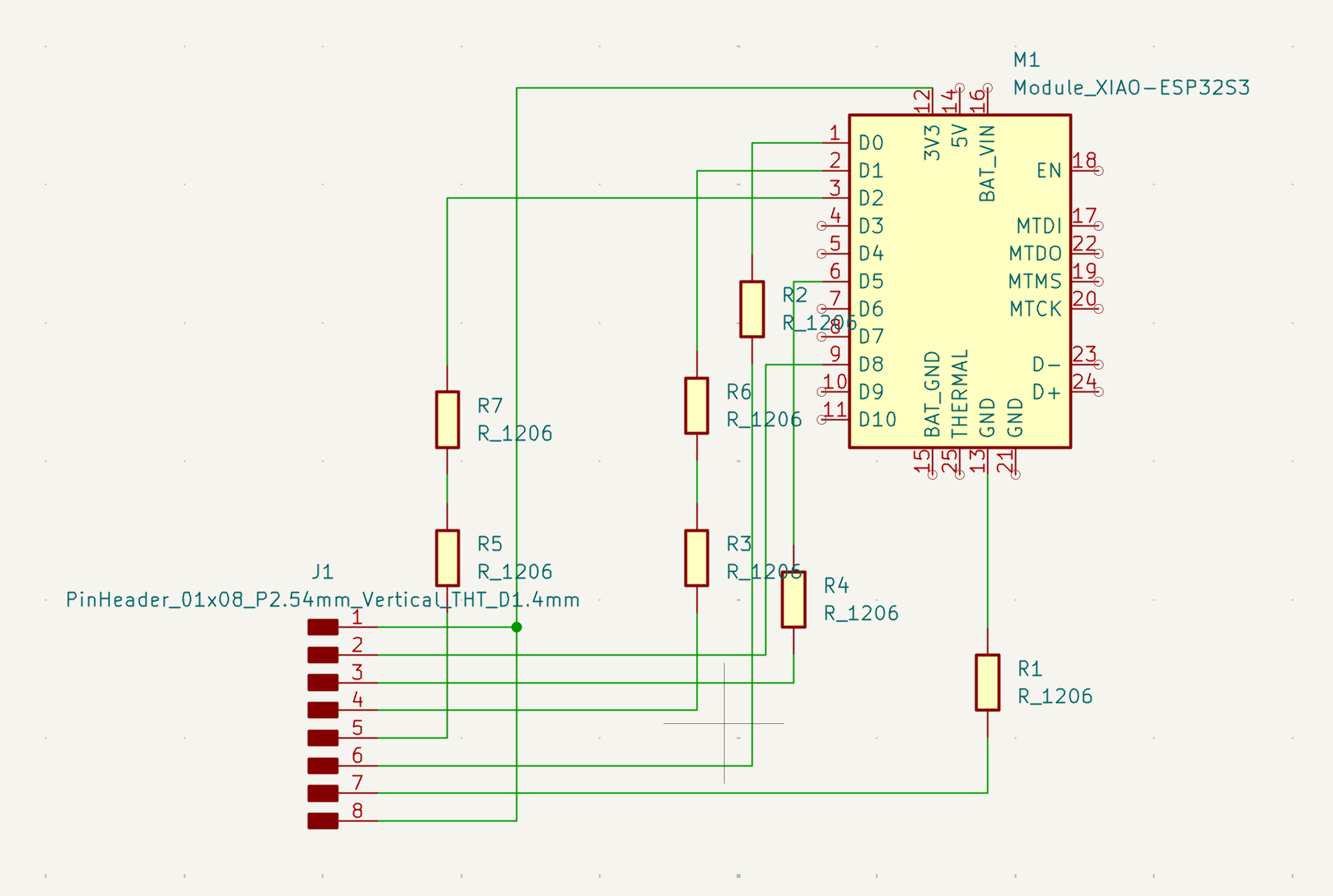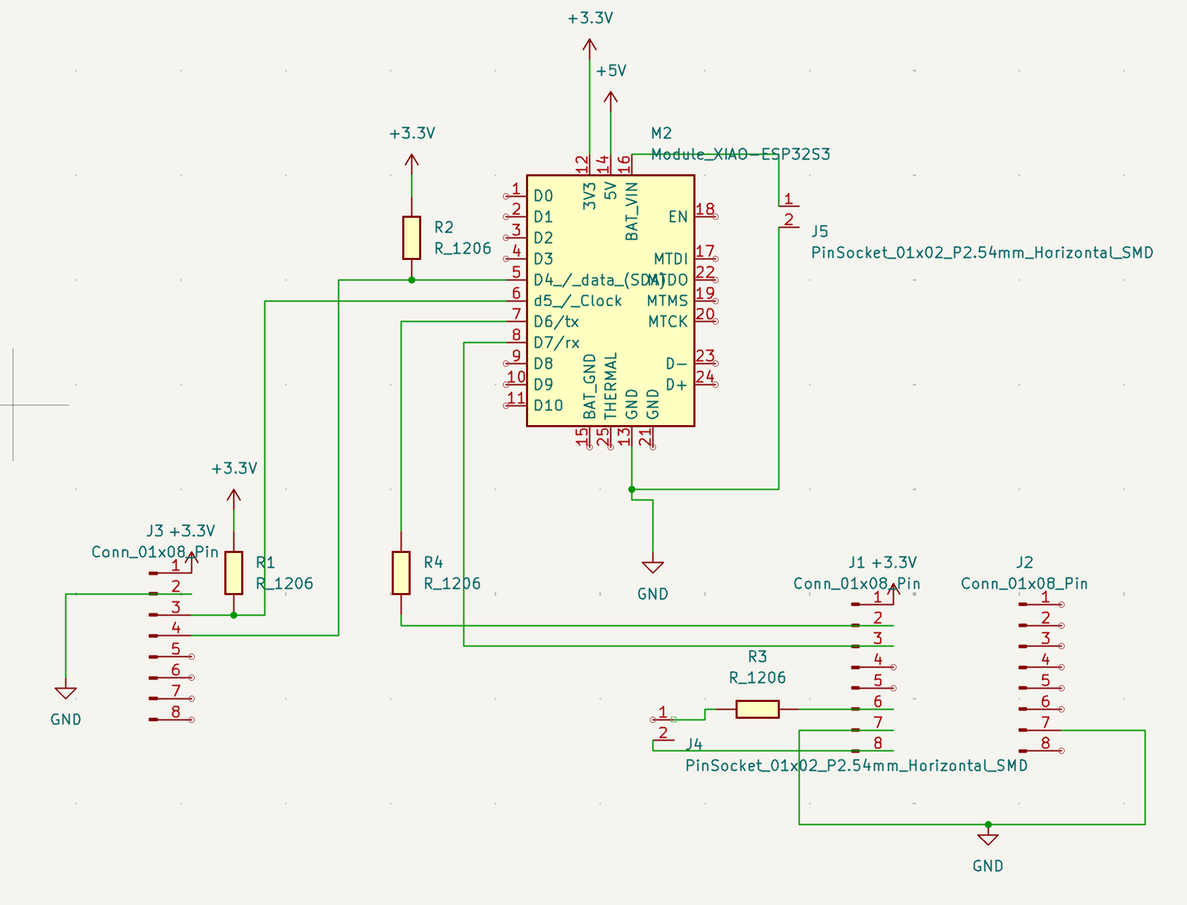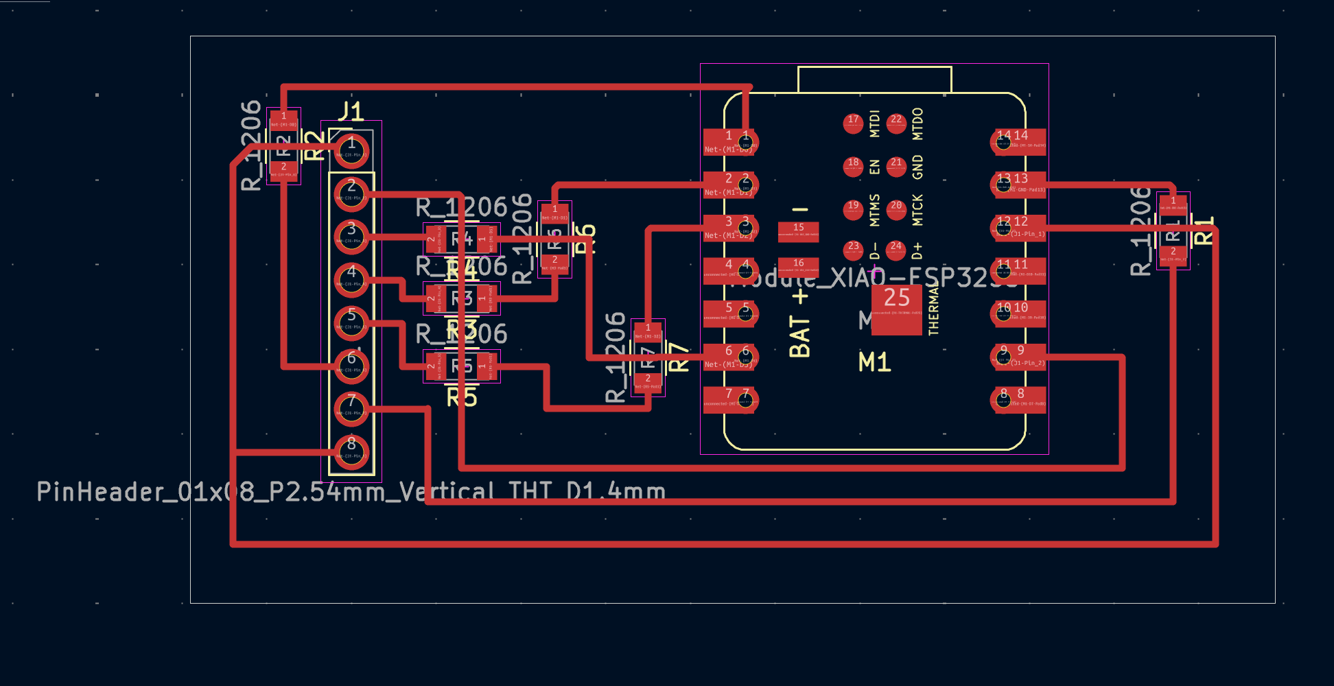My initial plan was elegant and minimal: a single board consisting of a XIAO ESP32-S3 connected to a TFT display. The entire board fit on one side and only required seven 0Ω resistors.