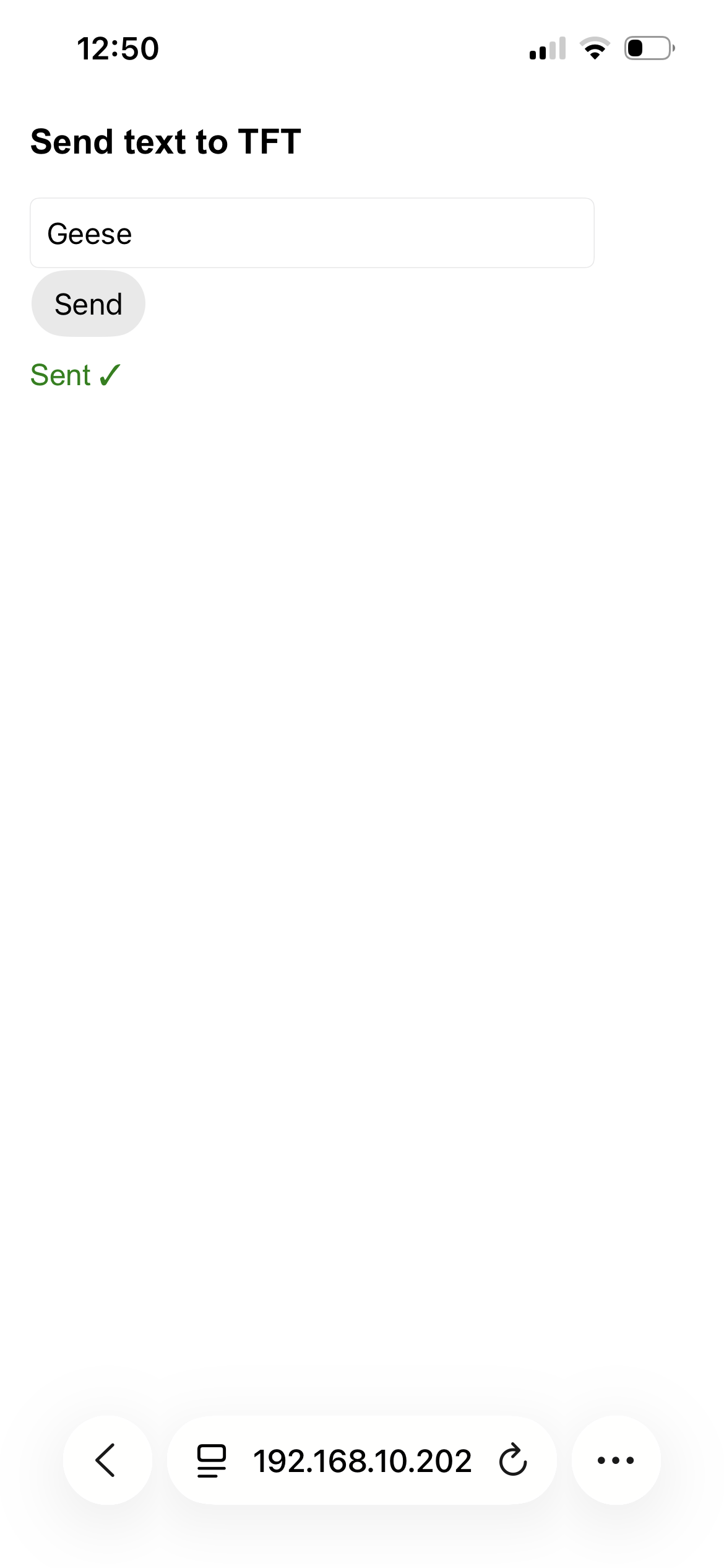 The ESP32 printed its assigned IP address to the serial monitor. Entering that IP address into my phone’s browser allowed me to access the device’s UI.