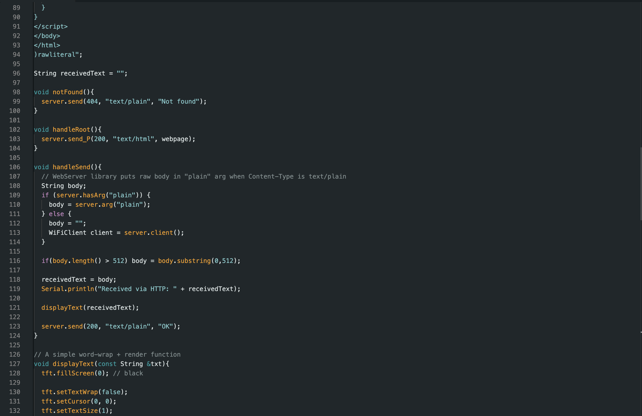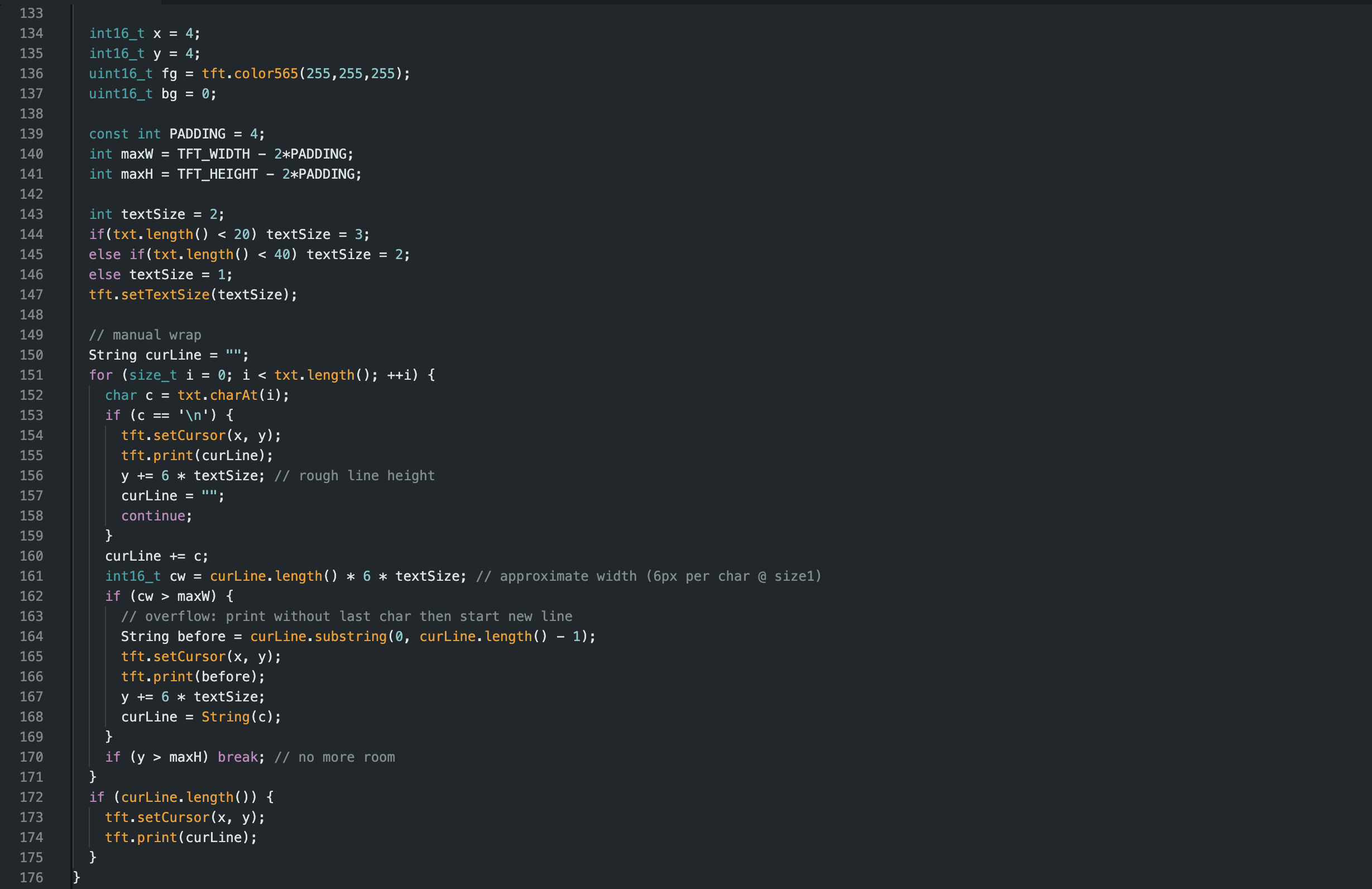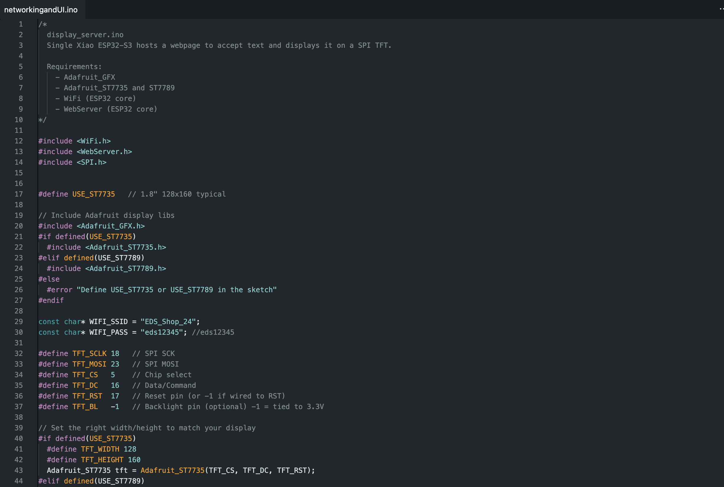 Despite the networking success, the TFT stubbornly displayed only a white screen. After extensive debugging, I realized the issue: I had assumed the TFT controller was an ST7735, but it was actually an ILI9163.