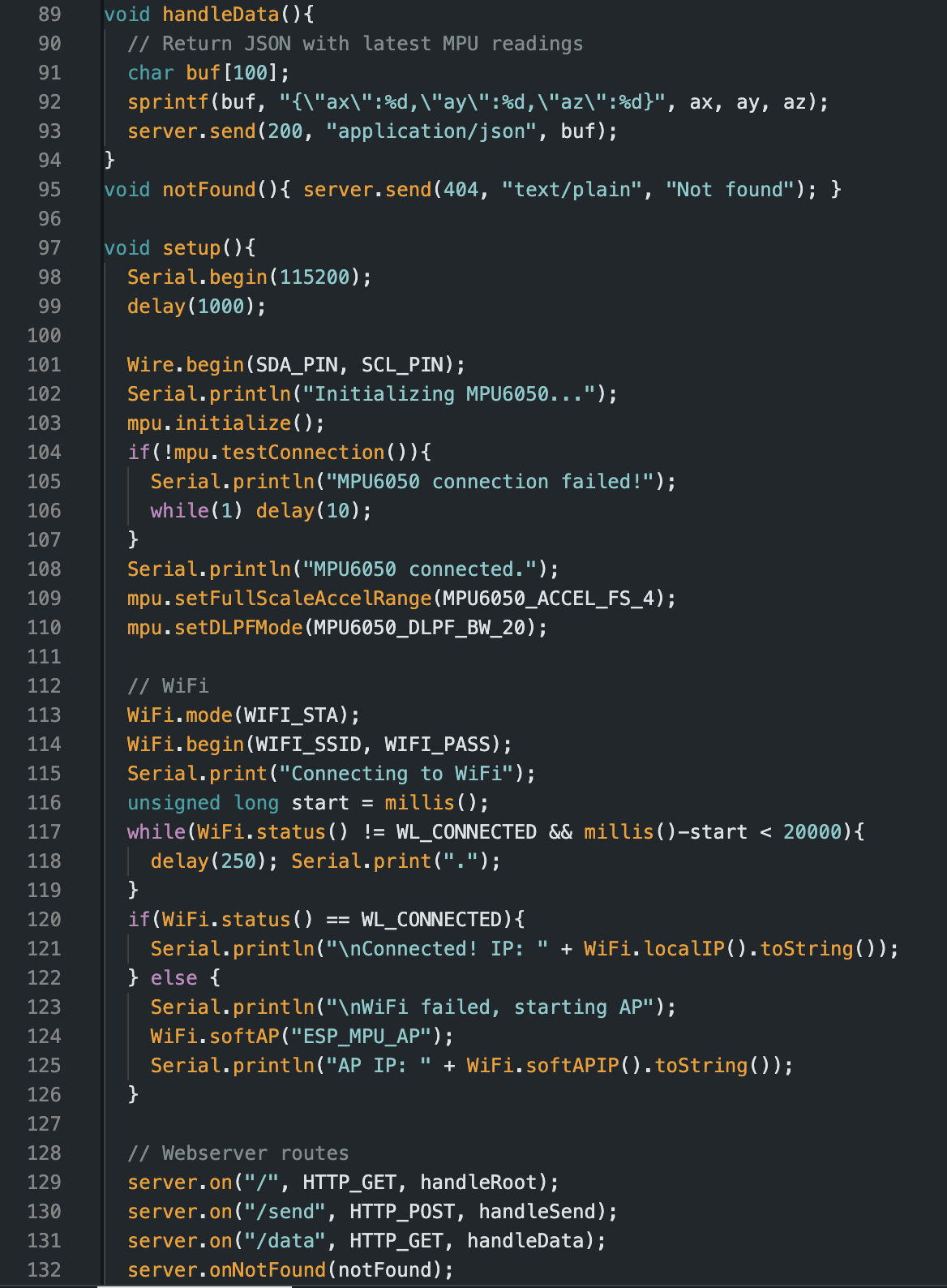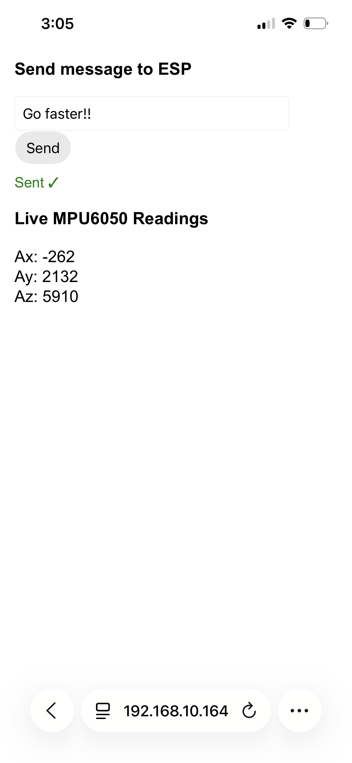The MPU6050 accelerometer became the primary input device. Rather than raw numbers buried in the serial monitor, the data was presented visually and continuously to the user.