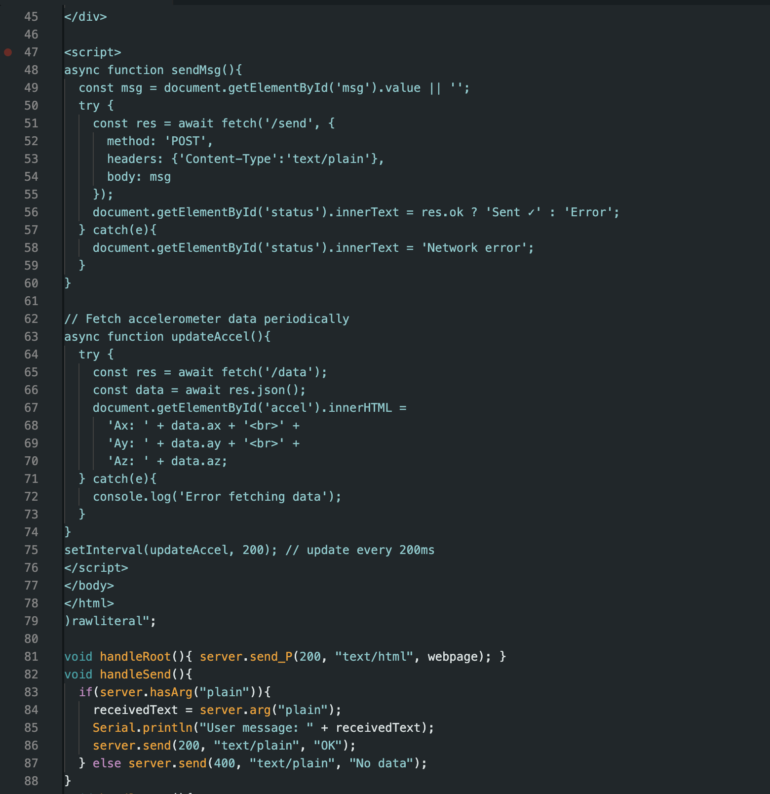 The ESP32 served a webpage that updated dynamically based on sensor input.
