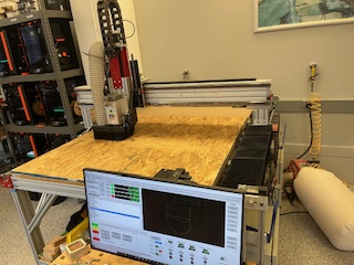 After stapling the plywood down to the CNC bed, it was finally time to machine.