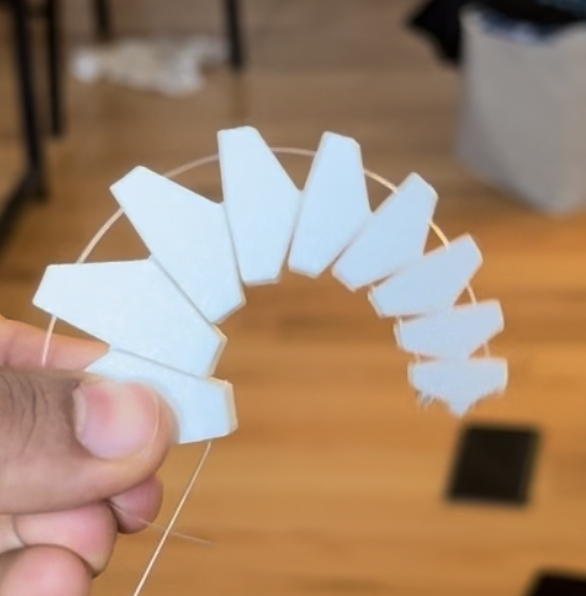 Next todo - see how the segments don’t align properly - there is a bug with my math. Then I noticed where the fishing line meets the glued segments, there is a lot of stress there and it snaps through the super glue - so I need to redesign it with that in mind.