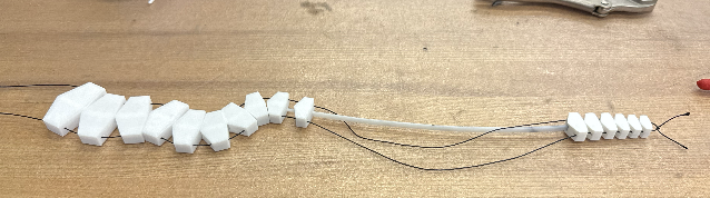 The TPU arrived and I first printed a long core of different thickness, but then I made the height just 1mm and it was too floppy. Then settled on a long rod with a 3mm x 3mm square base as the core. Then I went to designing the cad files of each segment.