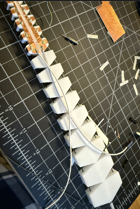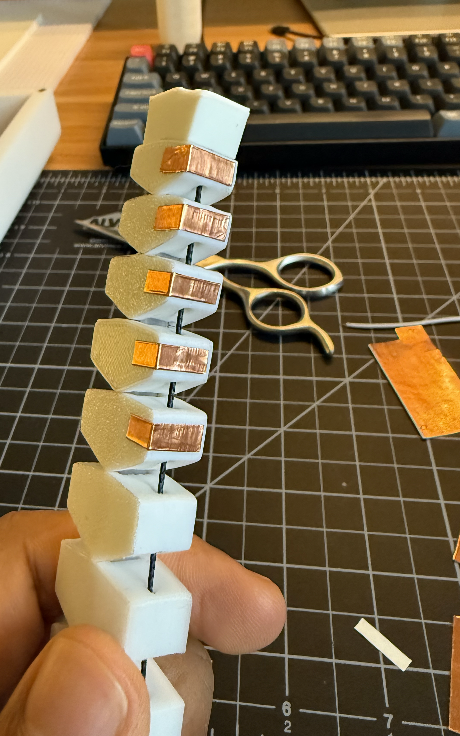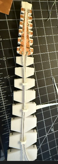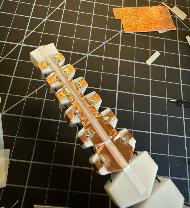 I made some early attempts at understanding how to build a flexible core - this is 3d printed via PLA and it was too stiff and brittle. I ordered TPU filament as a result.