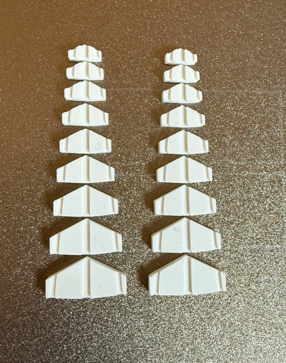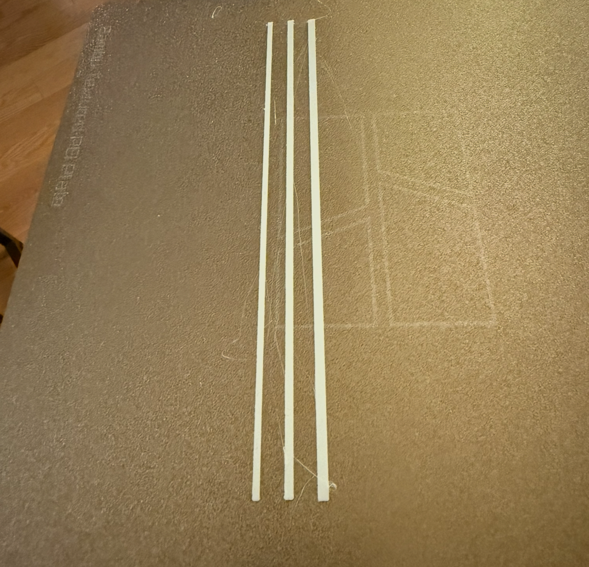The TPU arrived and I first printed a long core of different thickness, but then I made their height just 1mm and it was too floppy. Then settled on a 3mm x 3mm x ? rod as the core. Then I went to designing the cad files of each segment.