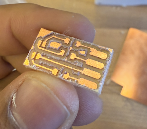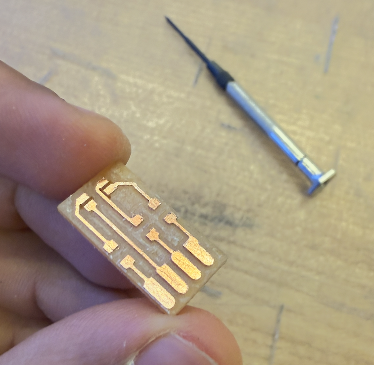 I milled the board and I found it the finish to not be as clean as it usually is - maybe the the end mill wasn’t that sharp? Anyway I found a screwdriver nearby to deburr the copper off.