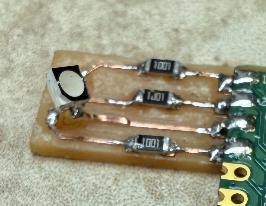 But it didn’t work! Even a simple blink code wasn’t working. I checked 2 things, 1) was there any shorts; there wasn’t. 2) was the pico sending power on the GPIO pins, and yes it was sending 3.3V. Therefore, my RGB Led wasn’t working, and I know I had it in the right orientation.