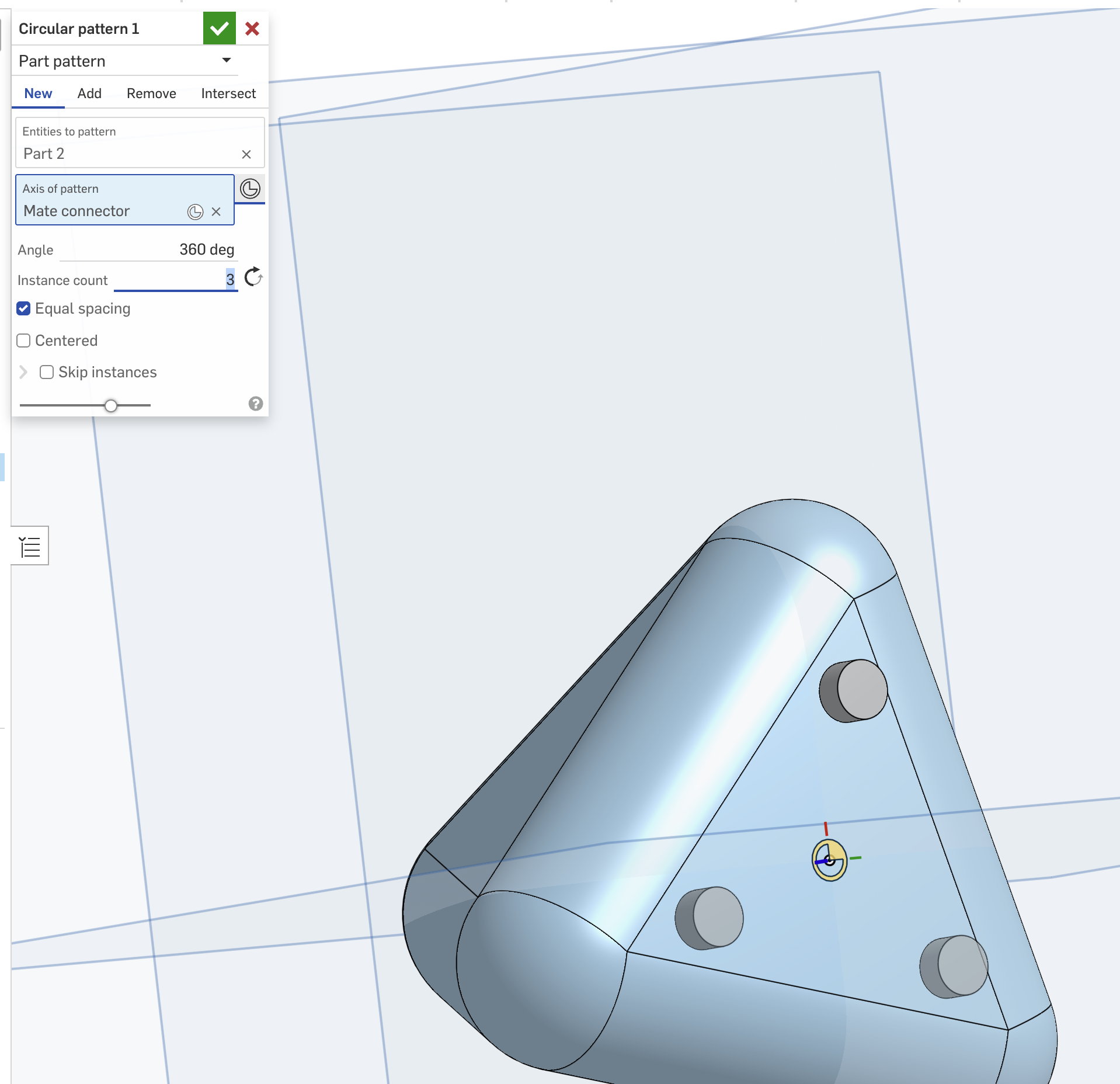 Then I wanted to add 3 legs, then using the same circular pattern tool I used in my laser cutting section.