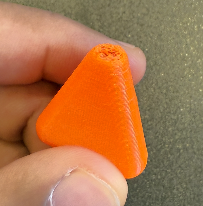 Some key things, the support inside the triangular cave seems hard to remove and the top of the print didn’t print cleanly. I think that might be because my infill was too little causing the dome creation to not have a adequate base.