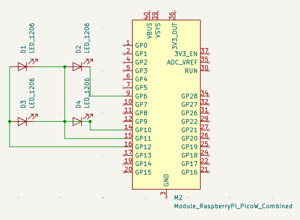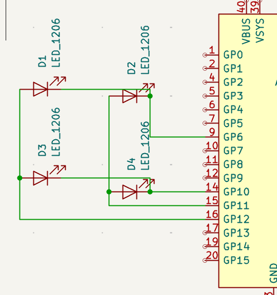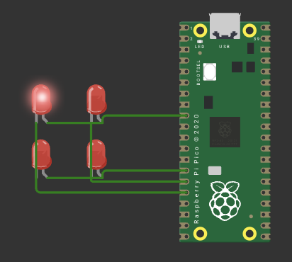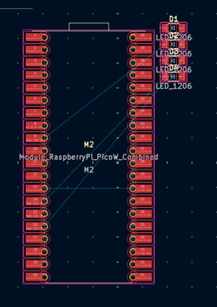 Then I decided to design the circuit in Wokwi after Saleem answer my question of once you have a KiCad design how do you simulate it. Therefore, before I design my board in KiCad, I wanted to make sure it works in the simulation, and the LEDs matrix is working properly. I decided to use the Raspberry Pico board.