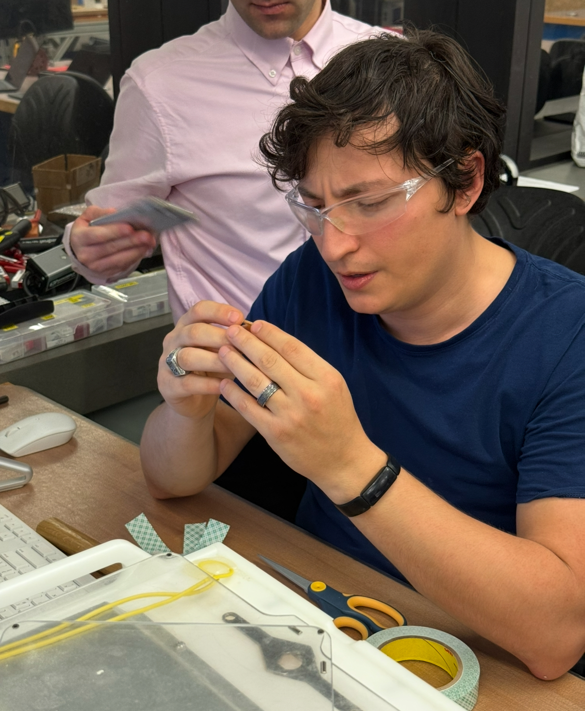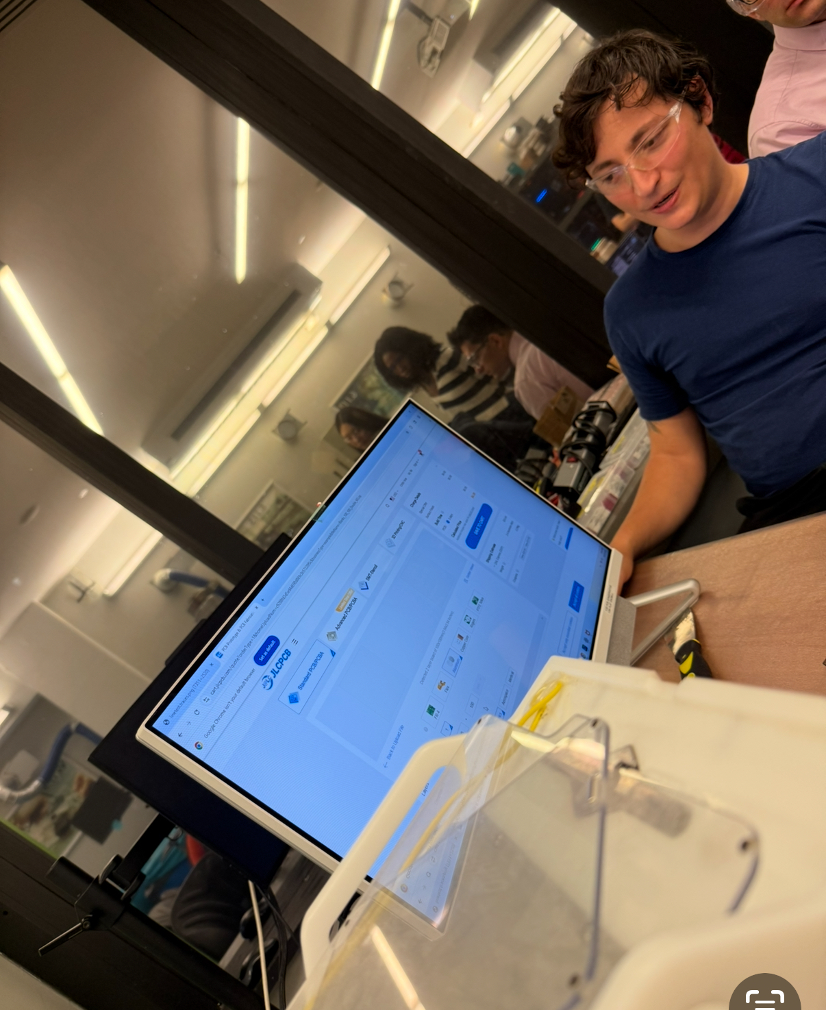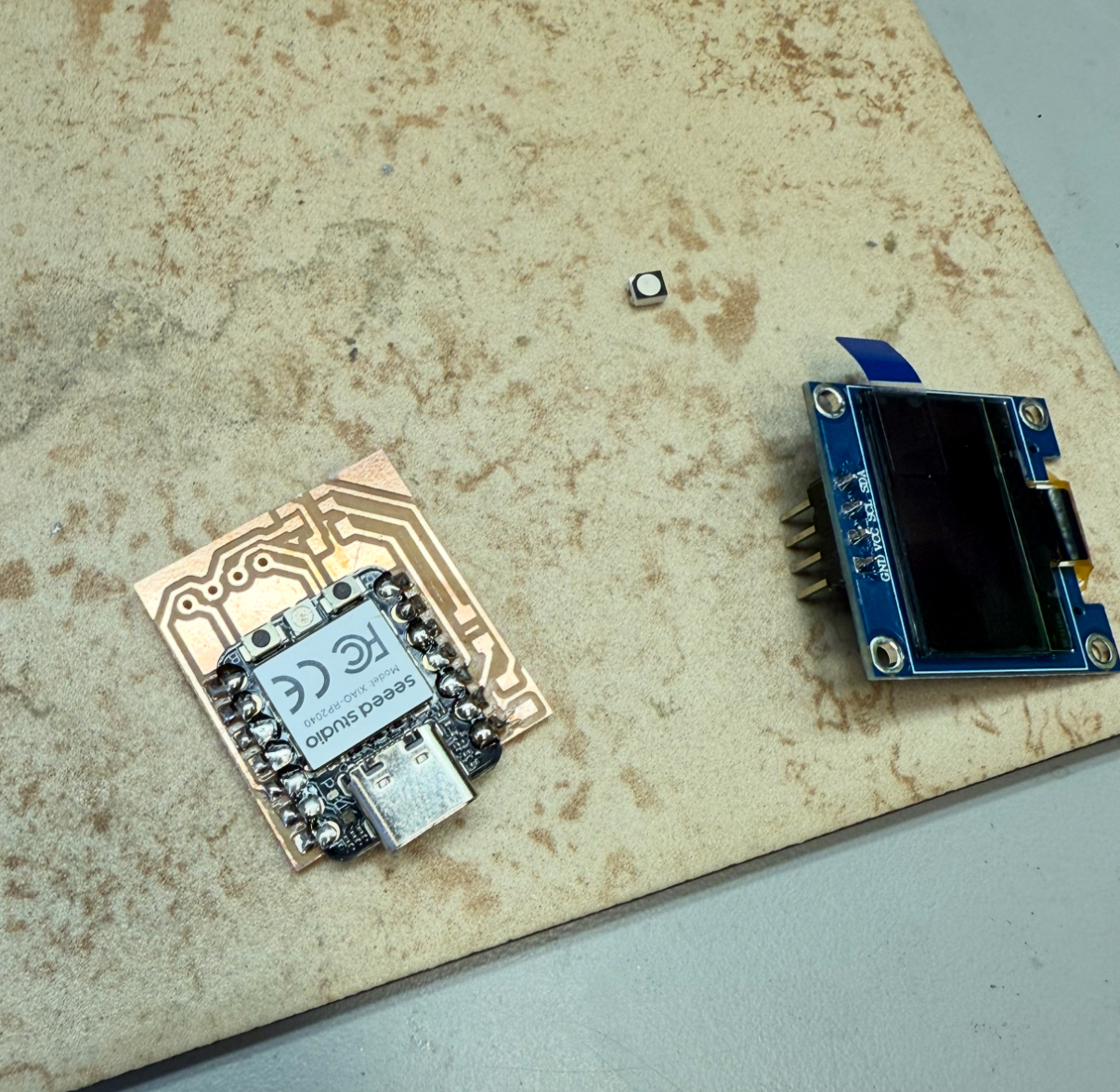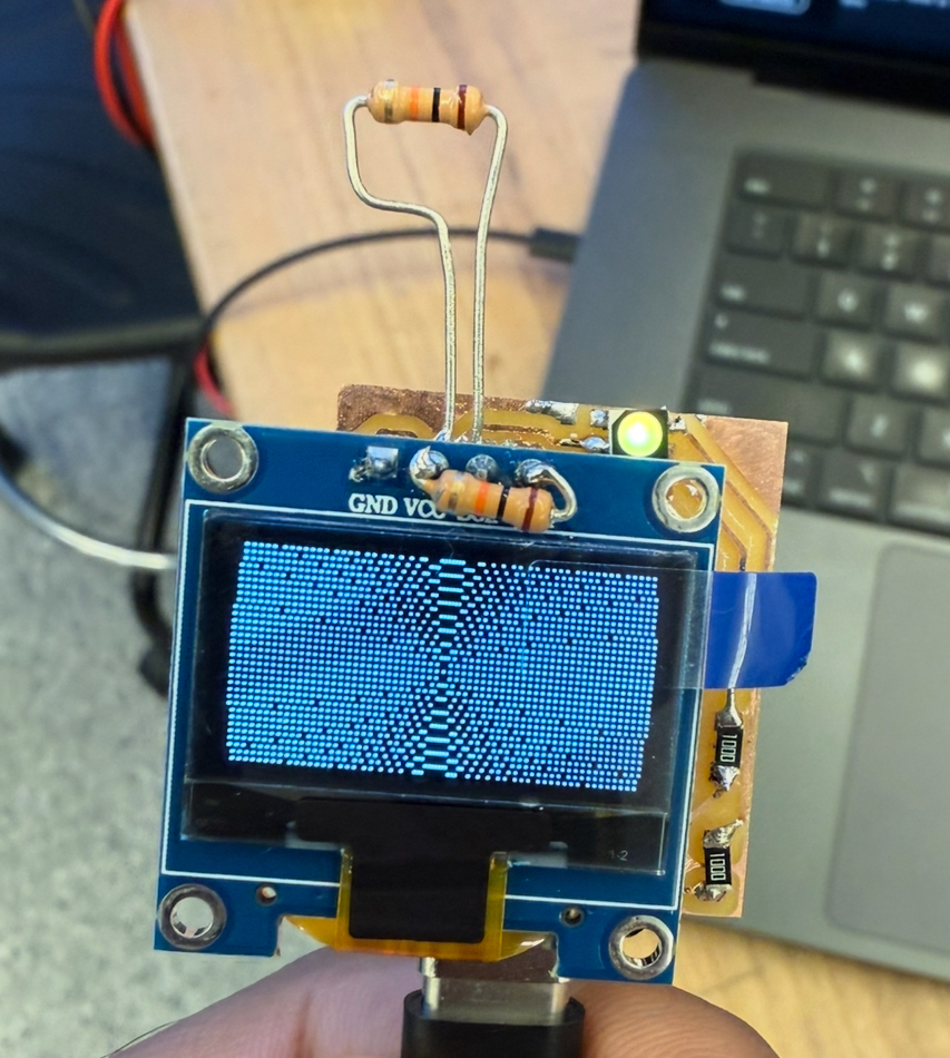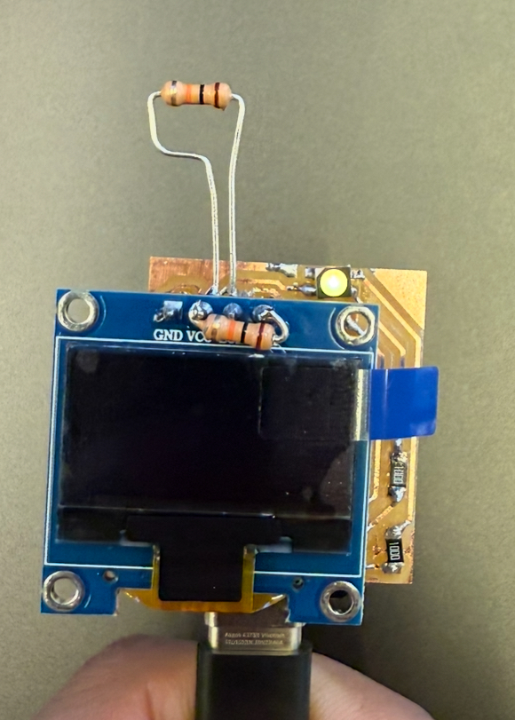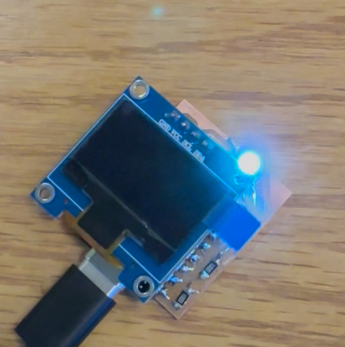Then there was another issue, because it screen still didn’t turn on. Anthony found out that it was because I didn’t solder a pin properly to the xiao board. So then with like 5 mins less, I added a blob of solder but then that shorted the trace for the LED, so then I needed to use solder wick to remove that. I didn’t take any pictures of that since I was under a big time crunch. And finally it all worked.