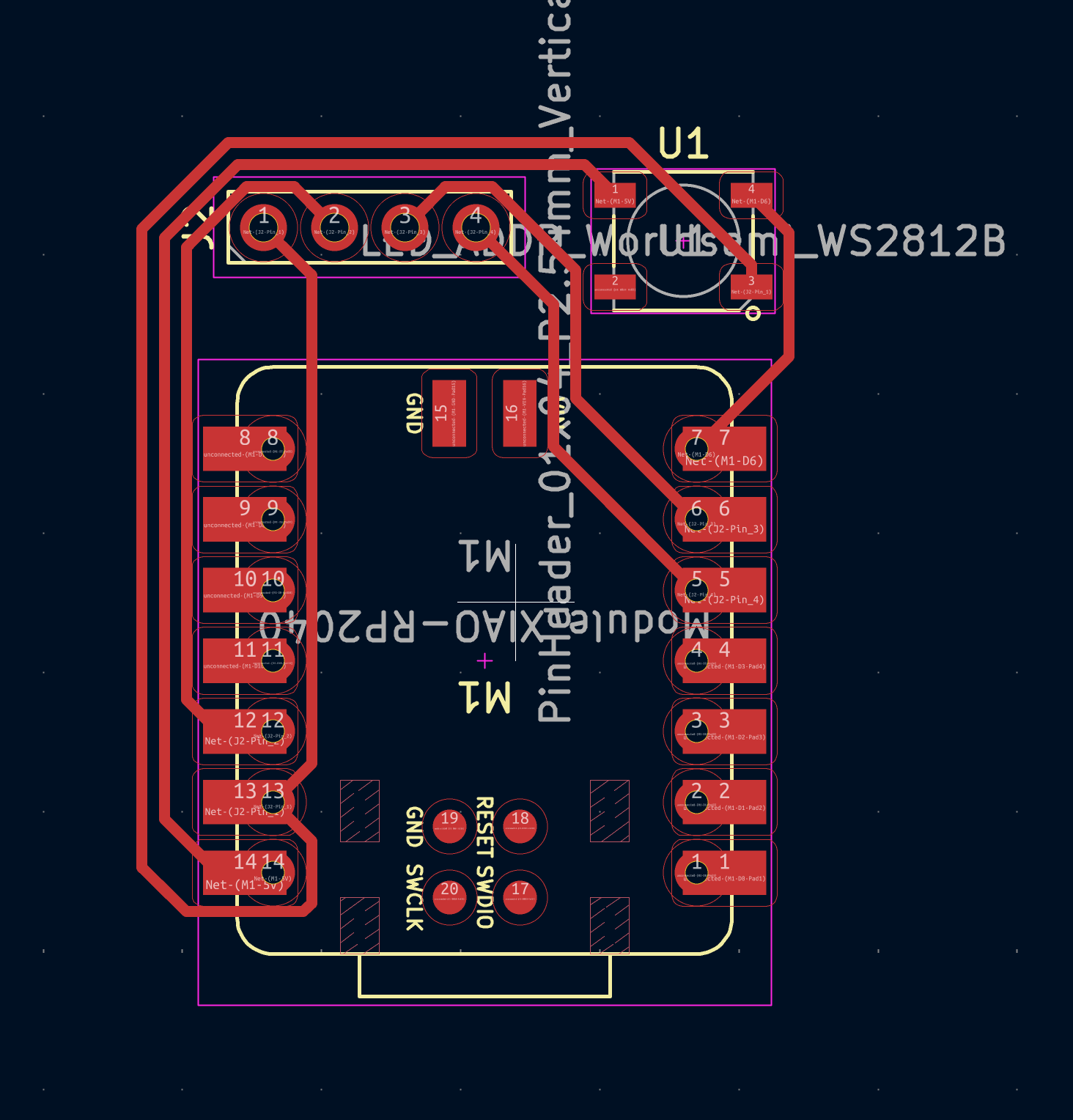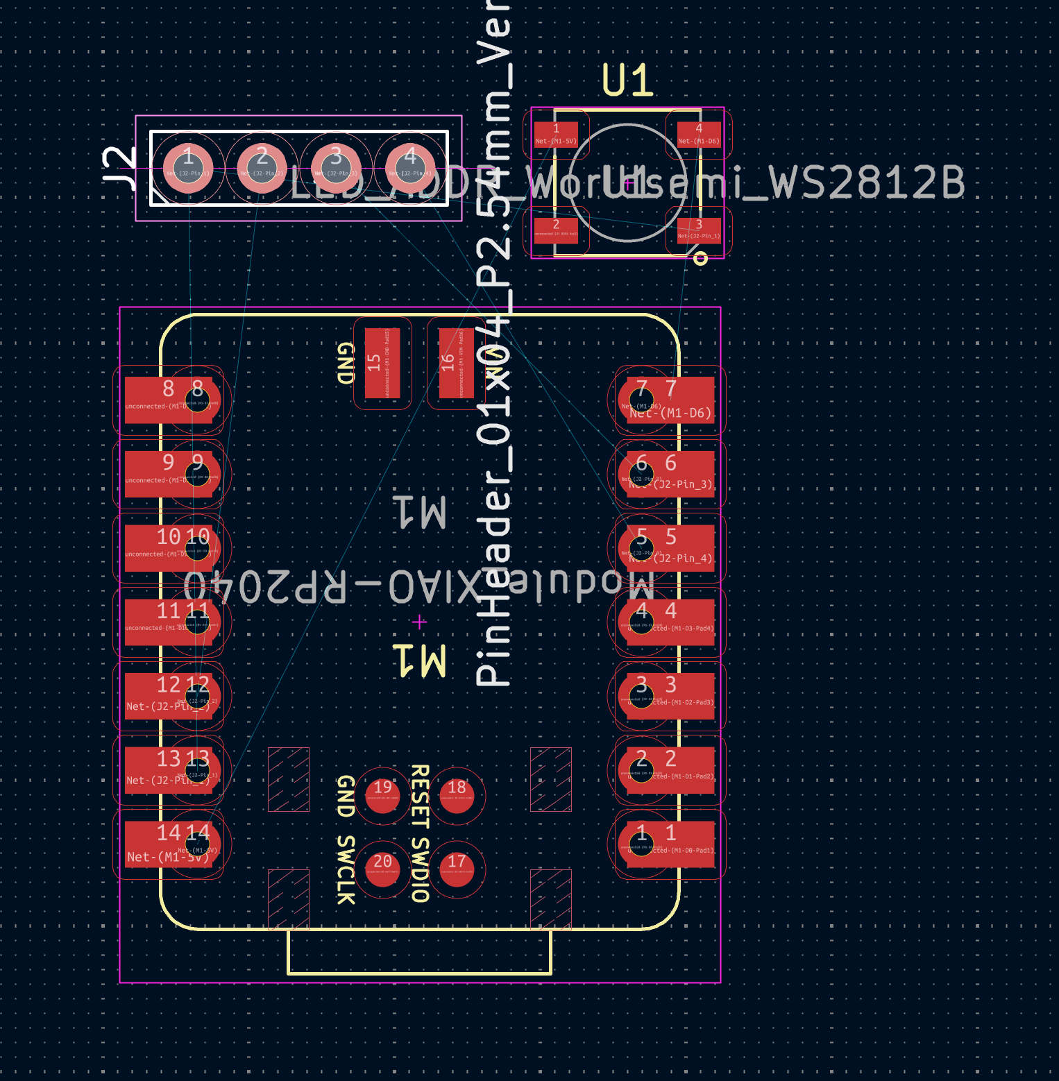 Then I spent some time routing all the wires. But then after looking at it closely I realized the LED is too large, and I choose the wrong part. Then I had to redo the LED.