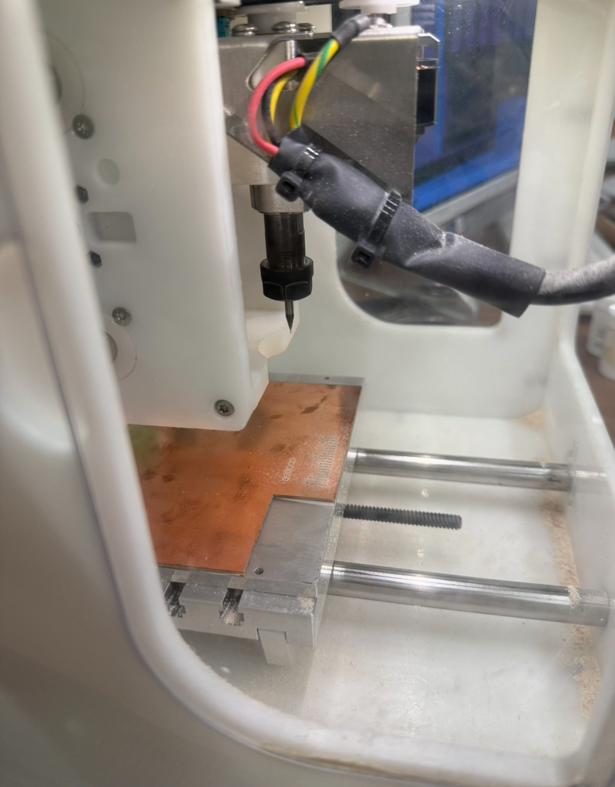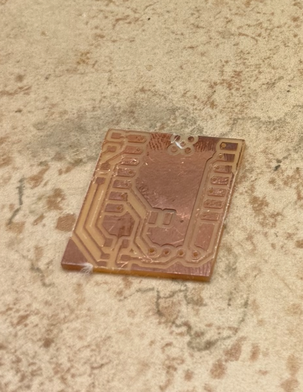 With Anthony we did the group assignment together of learning how to use the Bantam PCB milling machine. We learned about the different end mill bits, and we milled this board.