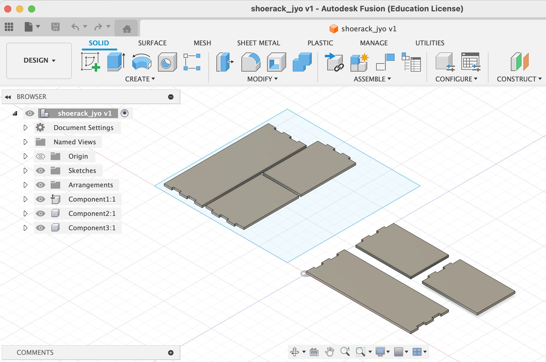 Now, for this project I wanted to make a shoe-rack. It is something that I have been meaning to buy for my apartment but Muji never seems to have them in stock so it has been delayed. So I thought this week would be a perfect opportunity. Initially I spent some time designing the CAD models in Onshape, and ended up with this.