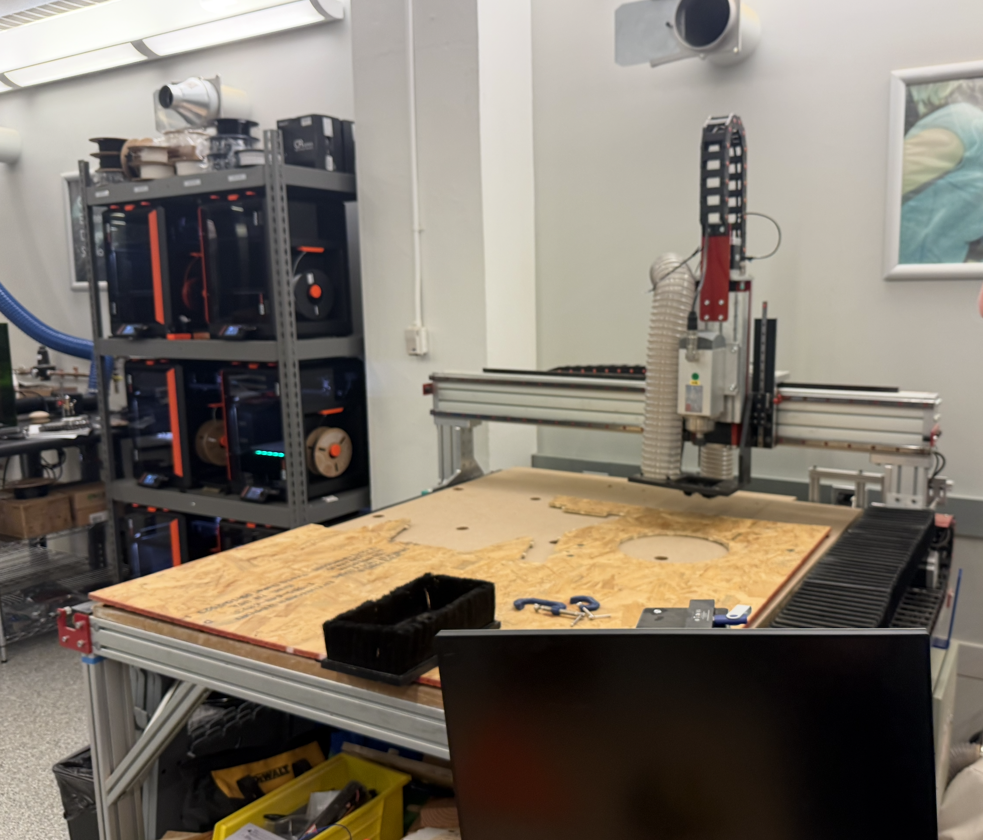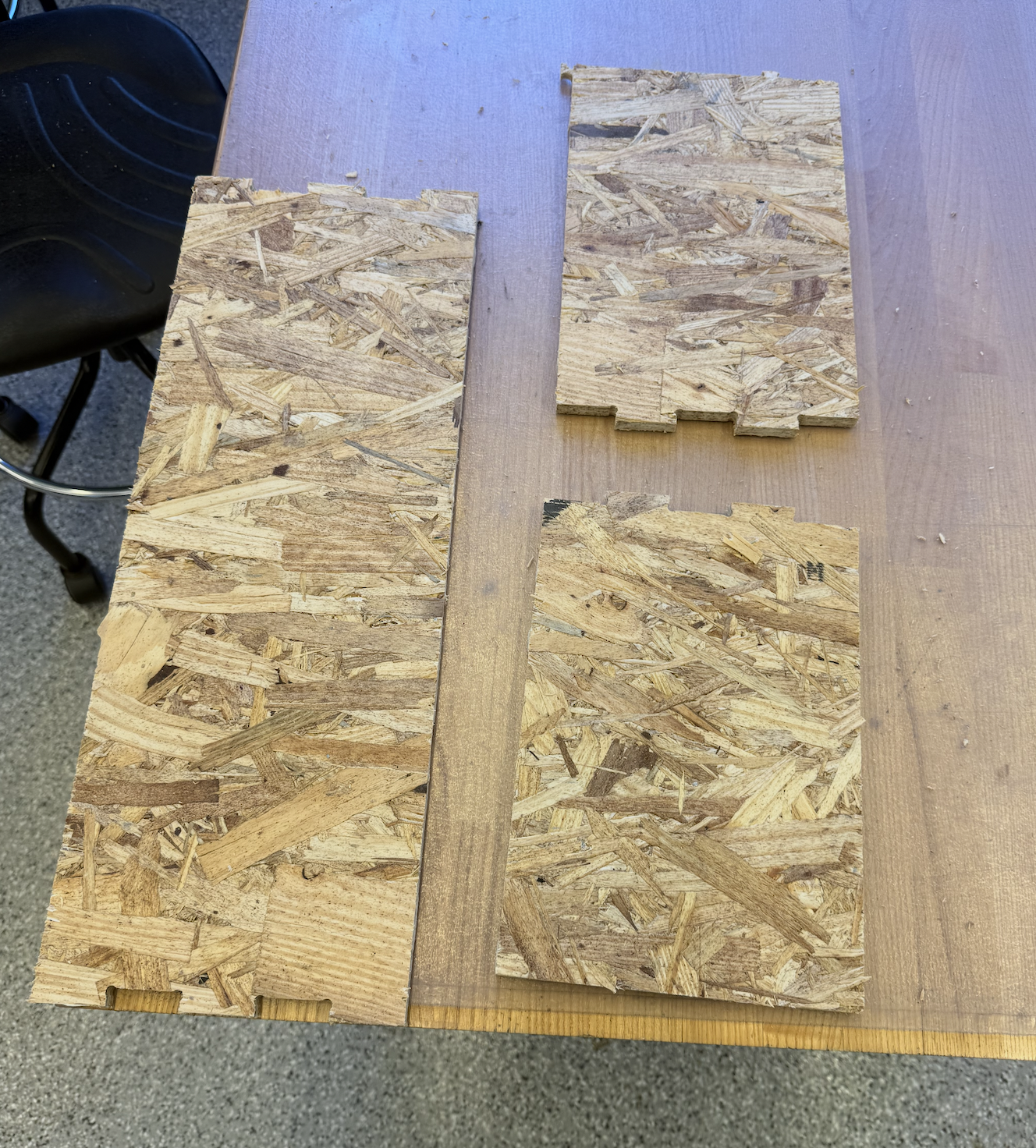 We then did safety training on using the CNC machine, learning about the estop, software, and how to use the plastic nails and the nail gun to hold our OSB. We are using the AVID 4x4 CNC.