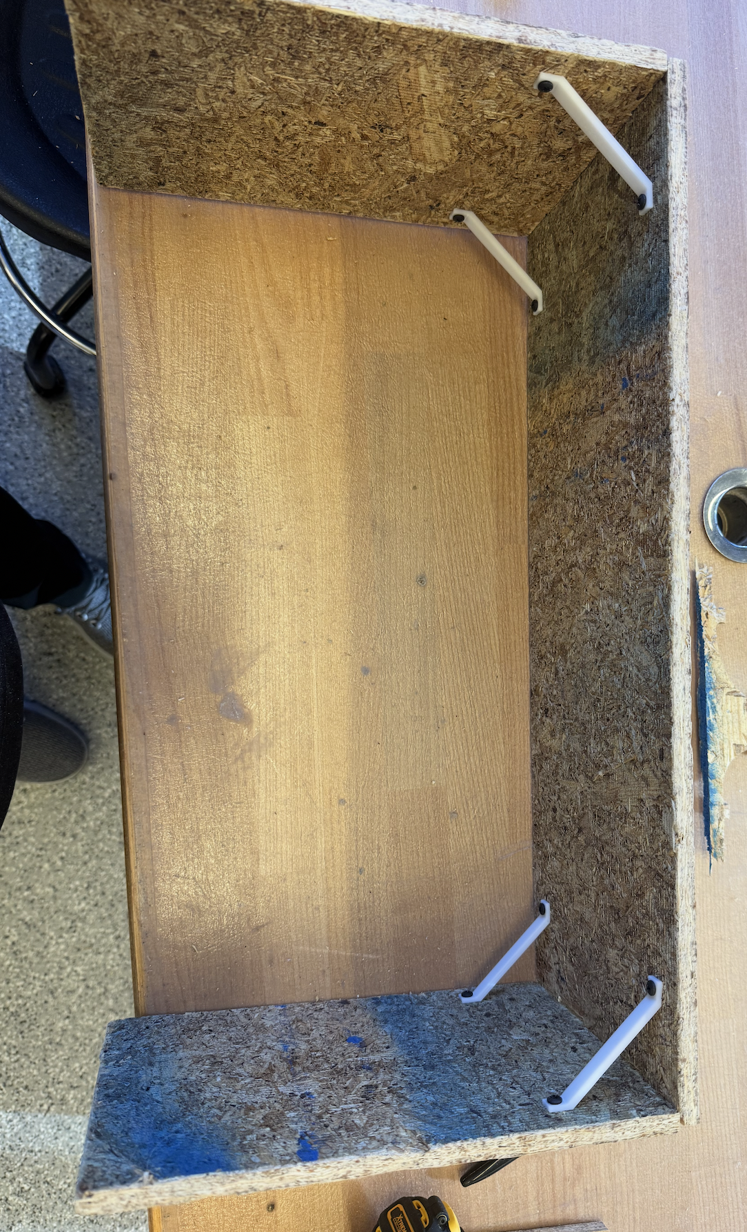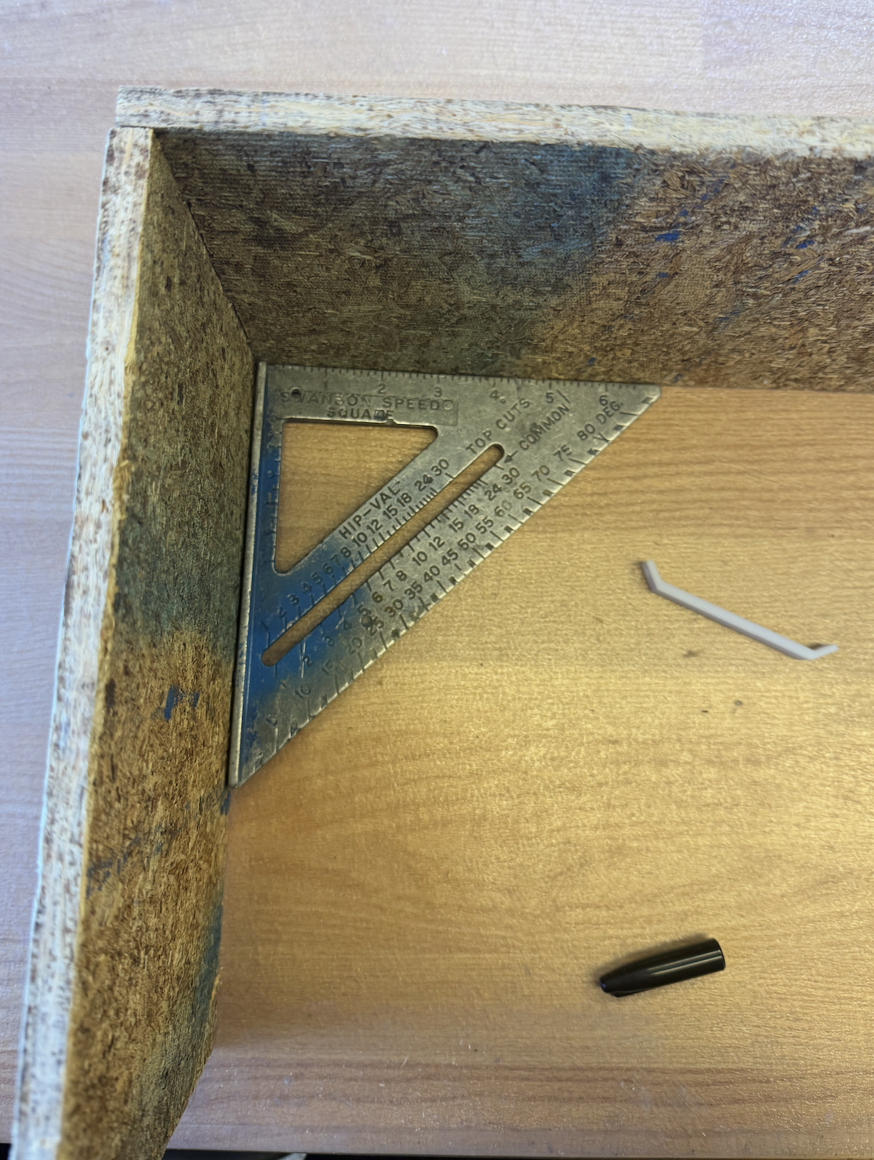 Then it was time to assemble everything. I used the 90 degree tool to make sure the woods were aligned properly and then used the sharpie to draw dots on where the screw into.
