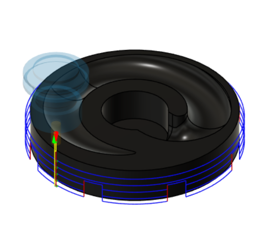 The base I CNC-milled, as I had planned to do. I found a piece of wood measuring about 20x20x40cm and shrunk my previous CAD from week 1 down to fit within these dimensions. I then, with help from the wonderful Anthony, constructed a CAM program to 3-axis mill the wood on the EDS router.