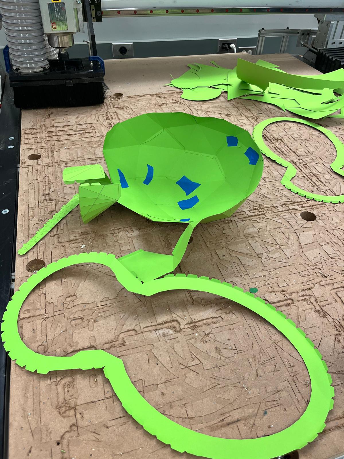 This might have to largely be 3D printed. I’m thinking I could CNC-mill the base out of wood, though, which would make it more organic (suitable for a plant) and sturdy. Leaves and other decorations I think would be cool to lasercut out of clear green acrylic, and heat-gun into shape. Ping pong balls I will purchase.