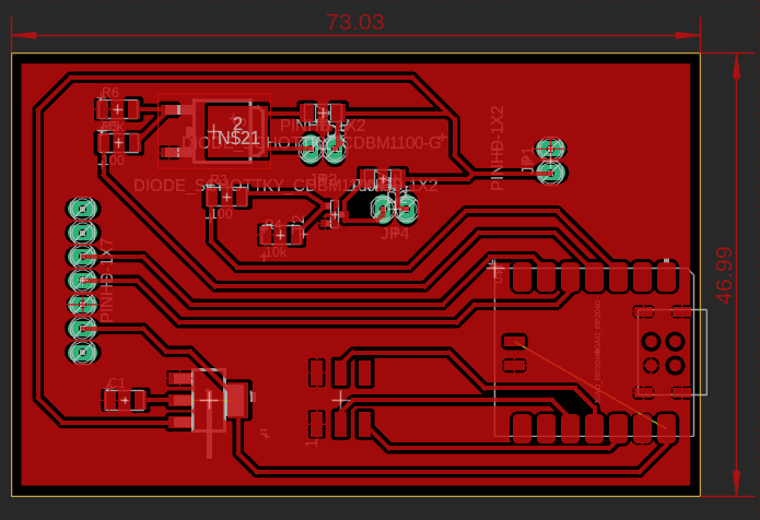 I initially used the PCB made during input/output devices week to test my motors, but the transistor on the shooting motor blew when I attempted to put a little more current on it. Makes sense - it was only rated for 3A. I replaced it with a larger transistor and reshaped my board to be less than 5cm by 8cm.