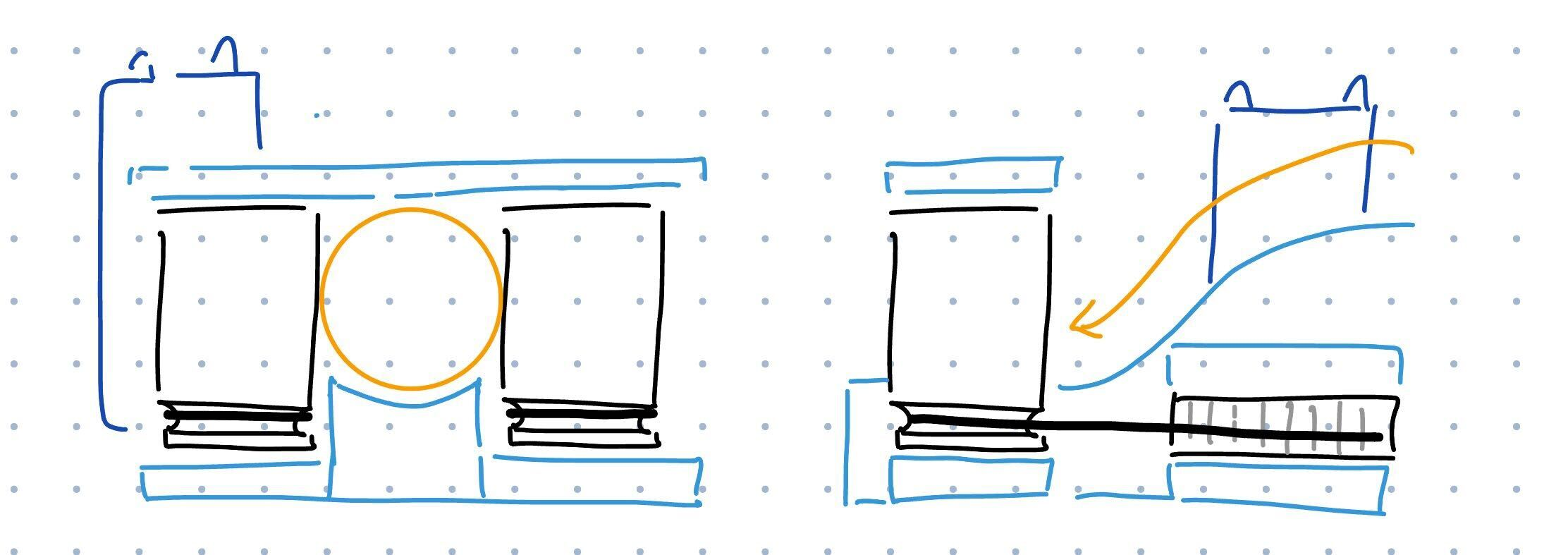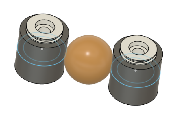 Bearings slot in perfectly. I also designed a slot system to hold the wheels while I’m testing them, allowing me to adjust the spacing between the wheels. Worried about applying tension (from my bands) on a skinny (5mm diameter) 3D print axel, I designed for the central axel to be 55mm long M5 bolt Anthony helped me find in the EECS storeroom. My stackup was to be as follows: