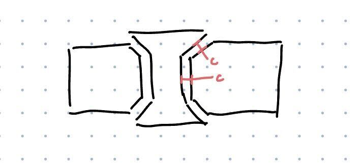 , spaced (36mm + 2 _ clearance) apart. I then extruded them in a spool shape (with the inner cylinder going clearance _ sqrt(2)