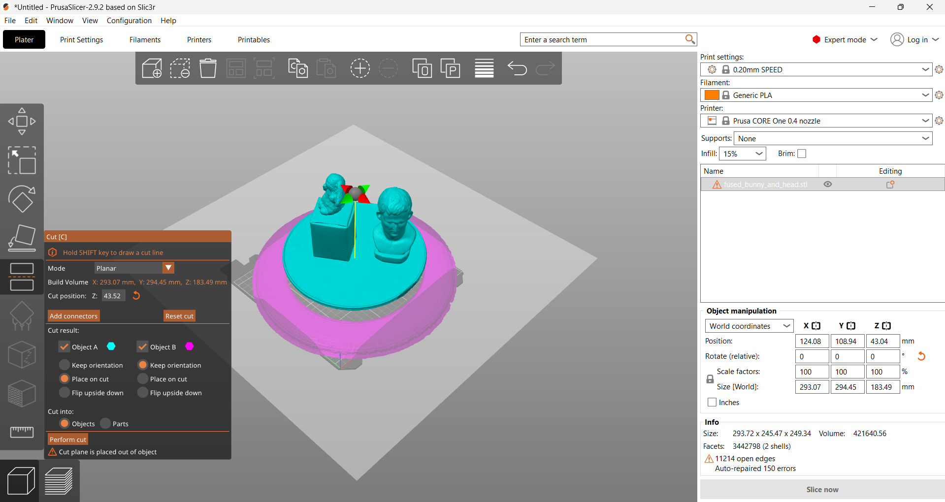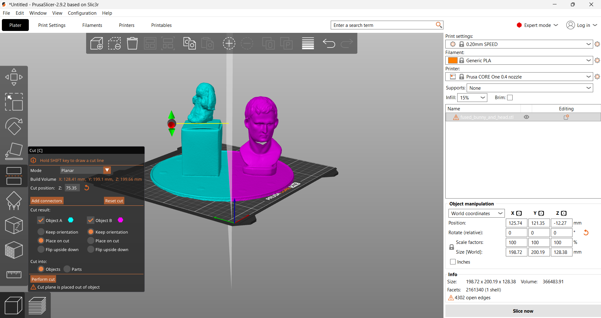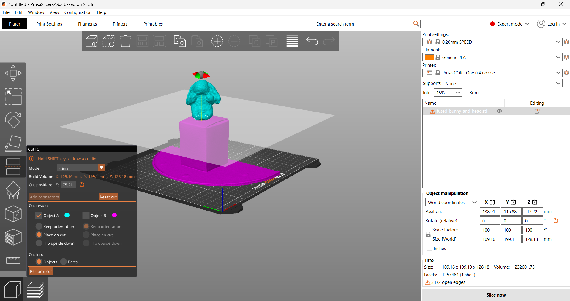 Sticking to what I knew, I just used the Prusa Slicer to crop out the bust and platform from the bunny.