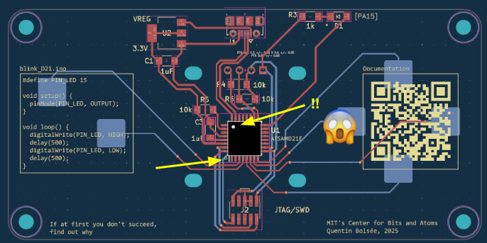 home about me final projectThis week we did embedded programming on QPAD boards developed by Quentin, one of the course TAs. I used the QPAD21 design with an ATSAMD21E18 microprocessor and USB-C adapter.